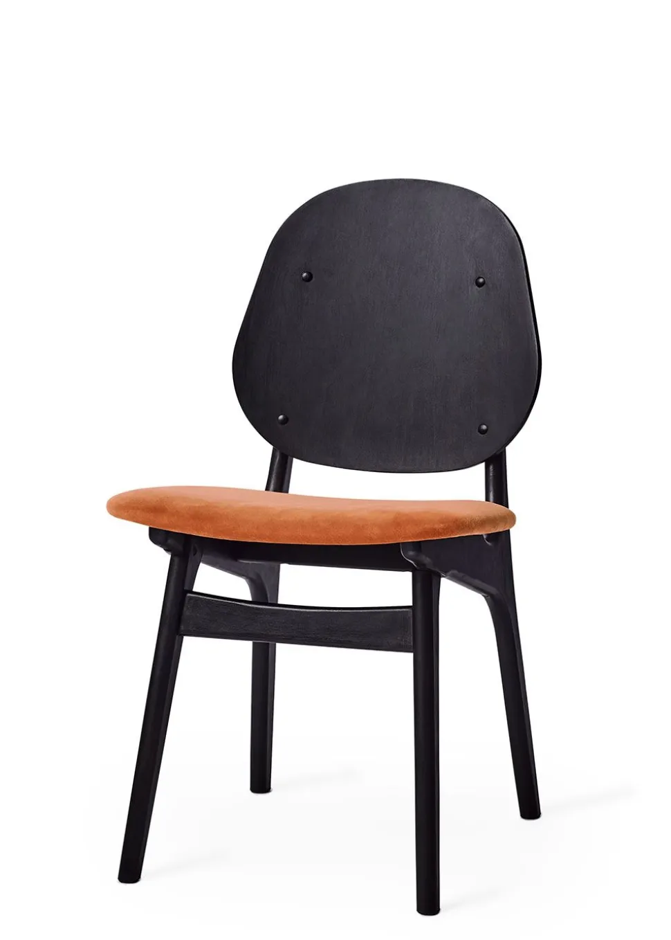Der 1959 von Arne Hovmand-Olsen entworfene ‚Noble Chair‘ greift die natürlichen Qualitäten des Holzes und die schönen Muster in seiner Maserung auf. Der organische Look des Holzes wird mit kühnen Textilien sowie klassischem Leder kontrastiert und mit raffinierten Messingdetails ergänzt, die dem Stuhl einen atemberaubenden Gesamteindruck verleihen. Das zeitlose und schlichte Design macht den Stuhl heute so relevant wie damals in den 50er Jahren und lässt sich problemlos in jeder Wohnung einrichten.
