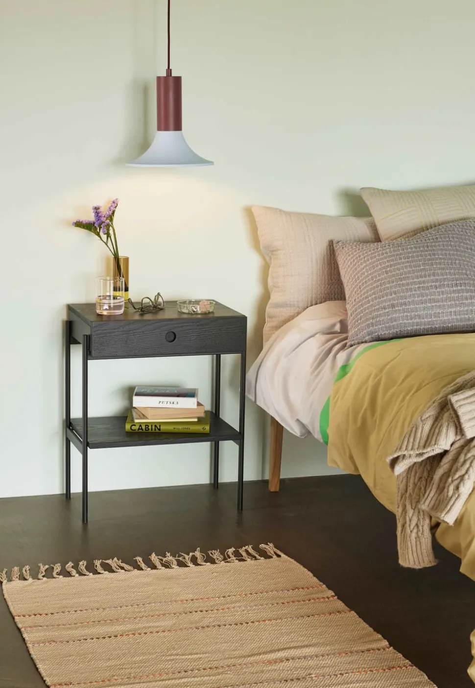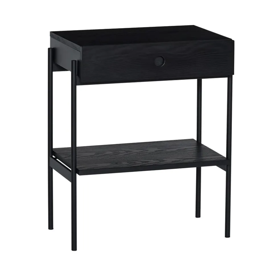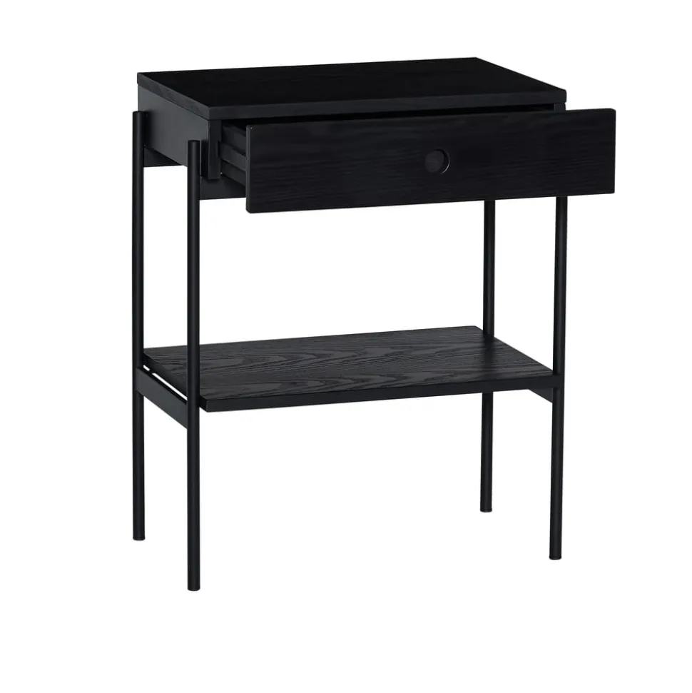 Perfekt neben dem Bett oder als kleiner Beistelltisch im Wohnzimmer, wo er einen raffinierten und stilvollen Akzent setzt. Durch seinen minimalistischen Look lässt er sich sowohl mit modernen als auch mit klassischen Möbeln kombinieren, und die schwarze Farbe bildet einen schönen Kontrast in hellen und dunklen Räumen.