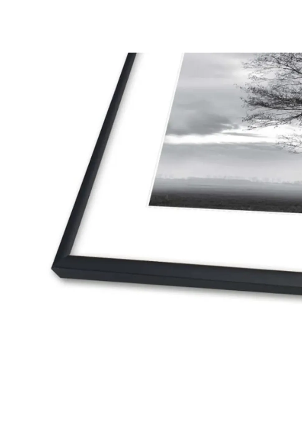 - Dieser Rahmen ist aus schwarzem Aluminium und hat eine Glasfront.