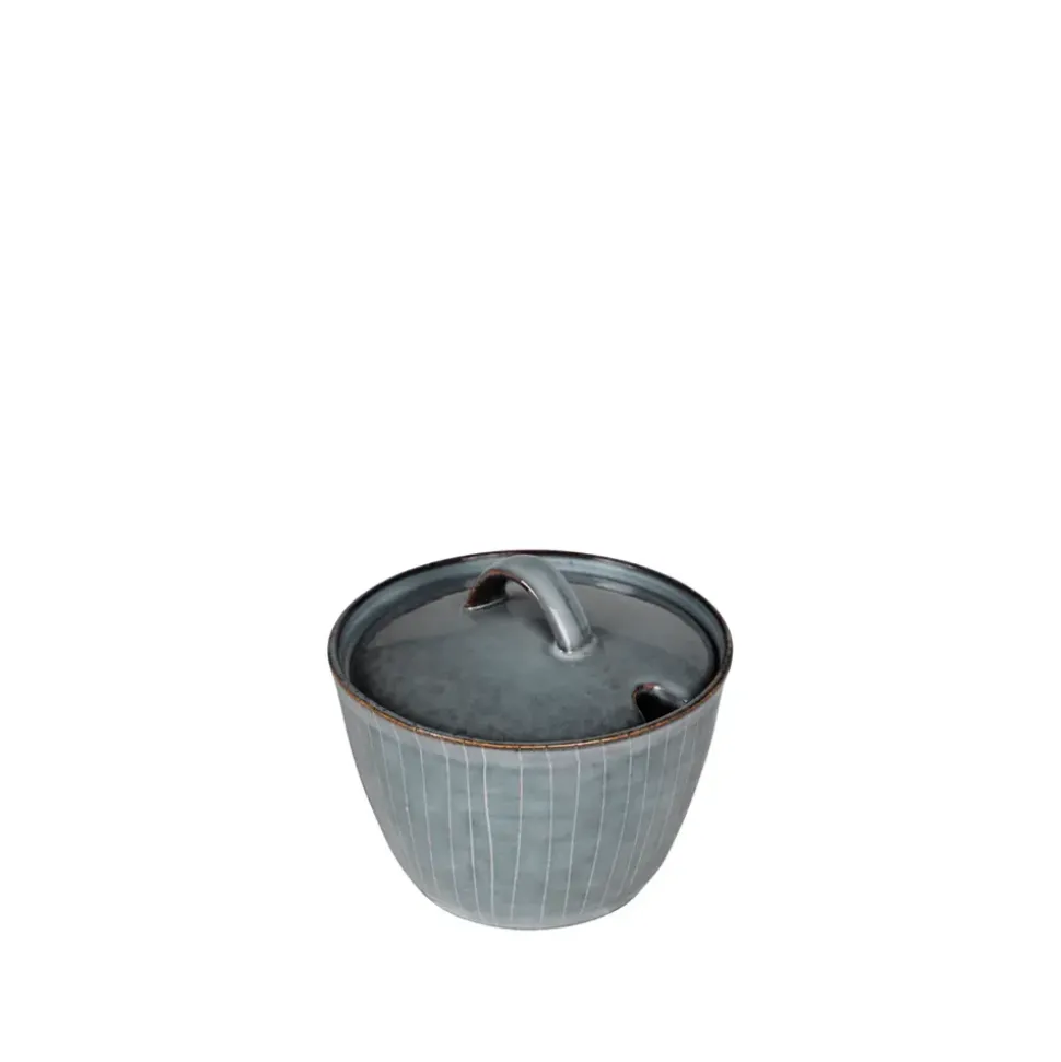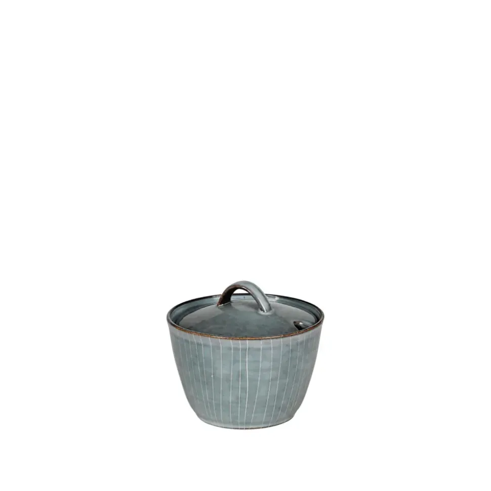 Die Nordic Sea Sugar Bowl von Broste Copenhagen ist Teil des unverwechselbaren Steingut-Universums, das von der rauen, nordischen Natur inspiriert wurde. Jede Zuckerdose wird von Hand in blaugrauen und schieferfarbenen Tönen glasiert, wodurch eine einzigartige und lebendige Oberfläche mit feinen Variationen entsteht. Die organische Form und das robuste Steinzeug schaffen einen authentischen und ästhetischen Ausdruck, der Handwerkskunst und Qualität ausstrahlt. Die Schale eignet sich sowohl für den täglichen Gebrauch als auch für besondere Anlässe, bei denen Details den Unterschied ausmachen. Die Serie bietet eine große Auswahl an Geschirr, mit dem sich ein komplettes und individuelles Tischbild gestalten lässt.