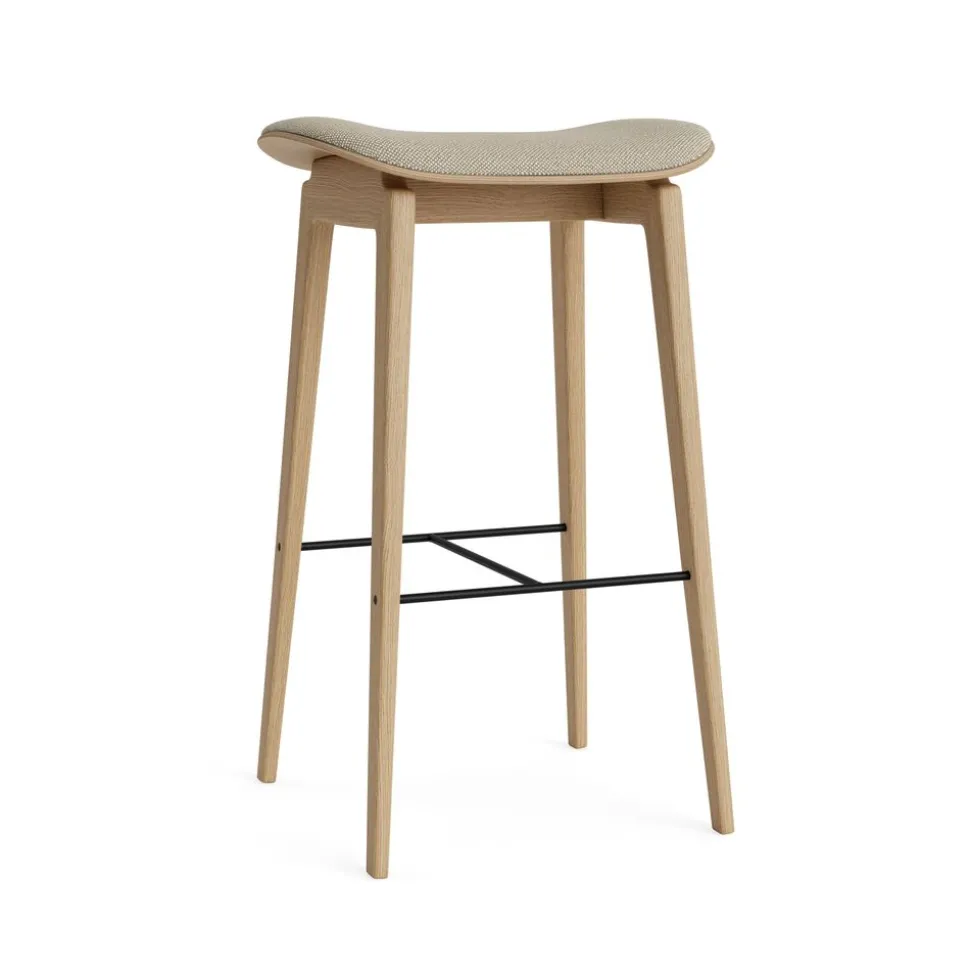 NY11 Barhocker von . Der Barhocker ist ein strapazierfähiger und funktioneller Stuhl mit einem zeitlosen Ausdruck. Das Gestell aus massiver Eiche verfügt über eine Fußstütze aus Stahl für zusätzlichen Komfort. Durch sein minimalistisches Design eignet sich der Barhocker für viele verschiedene Umgebungen.