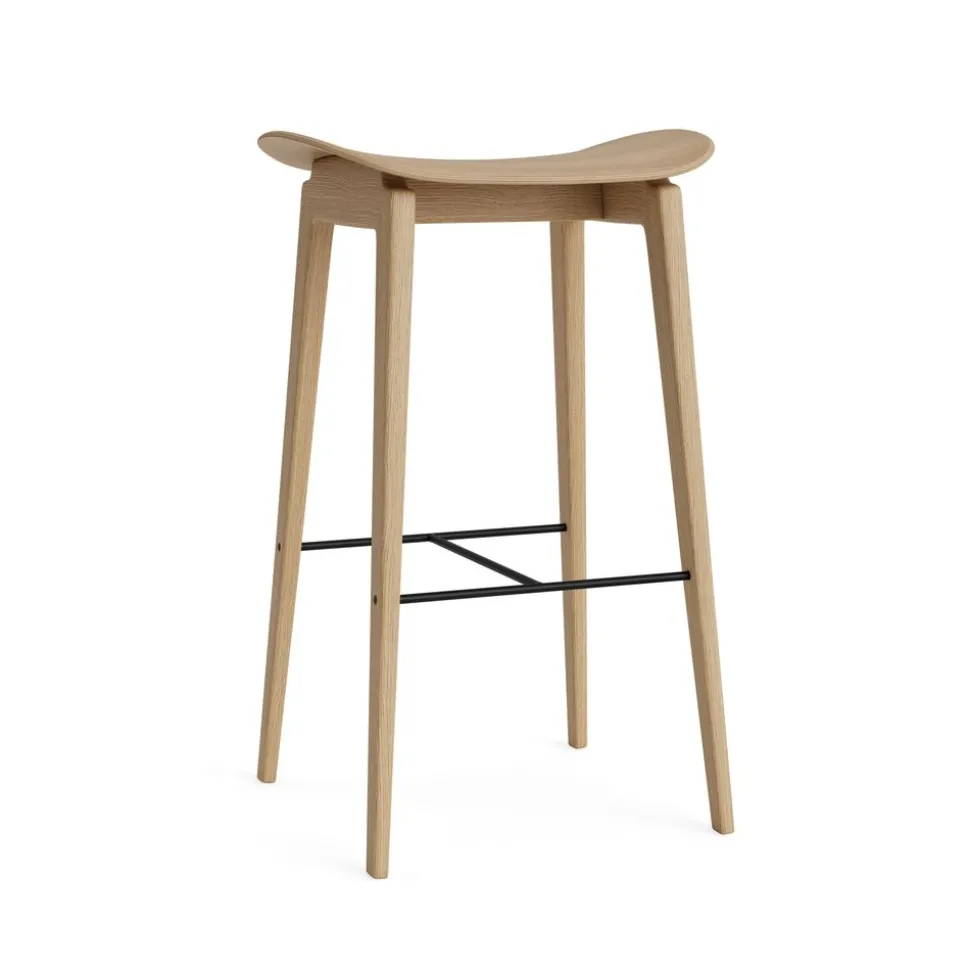 NY11 Barhocker von . Der Barhocker ist ein strapazierfähiger und funktioneller Stuhl mit einem zeitlosen Ausdruck. Das Gestell aus massiver Eiche verfügt über eine Fußstütze aus Stahl für zusätzlichen Komfort. Durch sein minimalistisches Design eignet sich der Barhocker für viele verschiedene Umgebungen.