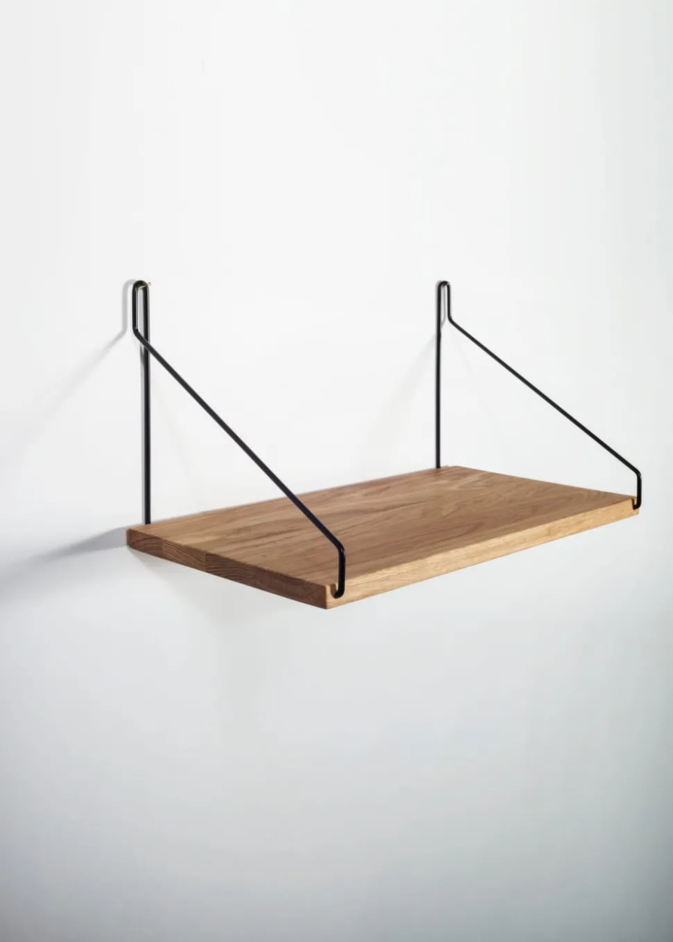 Wirklich schönes und klassisches Regal der dänischen Designermarke cph. Das Regal ist von den Modellen der 50er Jahre inspiriert und hat einen schlanken und Vintage-ähnlichen Look, aber dennoch modernen und trendigen Ausdruck. Das Material ist Eiche mit entweder Messing oder schwarzen Stäben. Das Regal kann fast überall aufgehängt werden. Zum Beispiel in der Küche mit Gewürzen und Ölen, im Wohnzimmer mit Büchern oder Vasen oder im Schlafzimmer oder Flur. Nur Ihre Phantasie setzt die Grenzen.