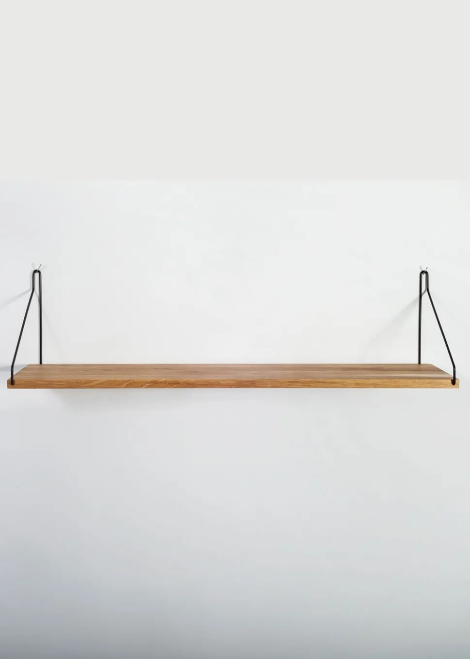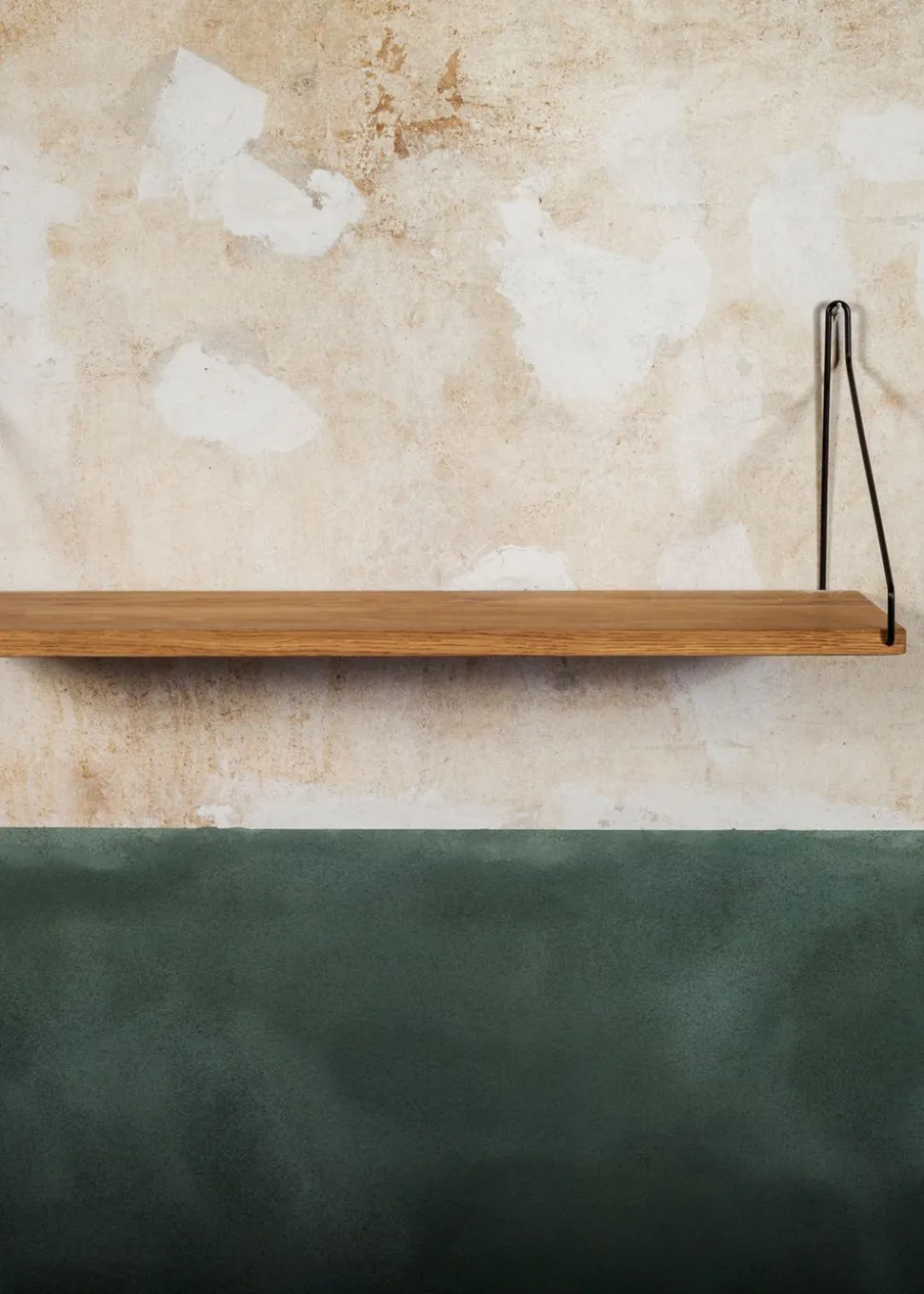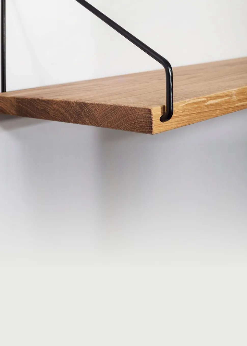 Wirklich schönes und klassisches Regal der dänischen Designermarke cph. Das Regal ist von den Modellen der 50er Jahre inspiriert und hat einen schlanken und Vintage-ähnlichen Look, aber dennoch modernen und trendigen Ausdruck. Das Material ist Eiche mit Messing oder schwarzen Stäben. Das Regal kann fast überall aufgehängt werden. Zum Beispiel in der Küche mit Gewürzen und Ölen, im Wohnzimmer mit Büchern oder Vasen oder im Schlafzimmer oder Flur. Nur Ihre Phantasie setzt die Grenzen.