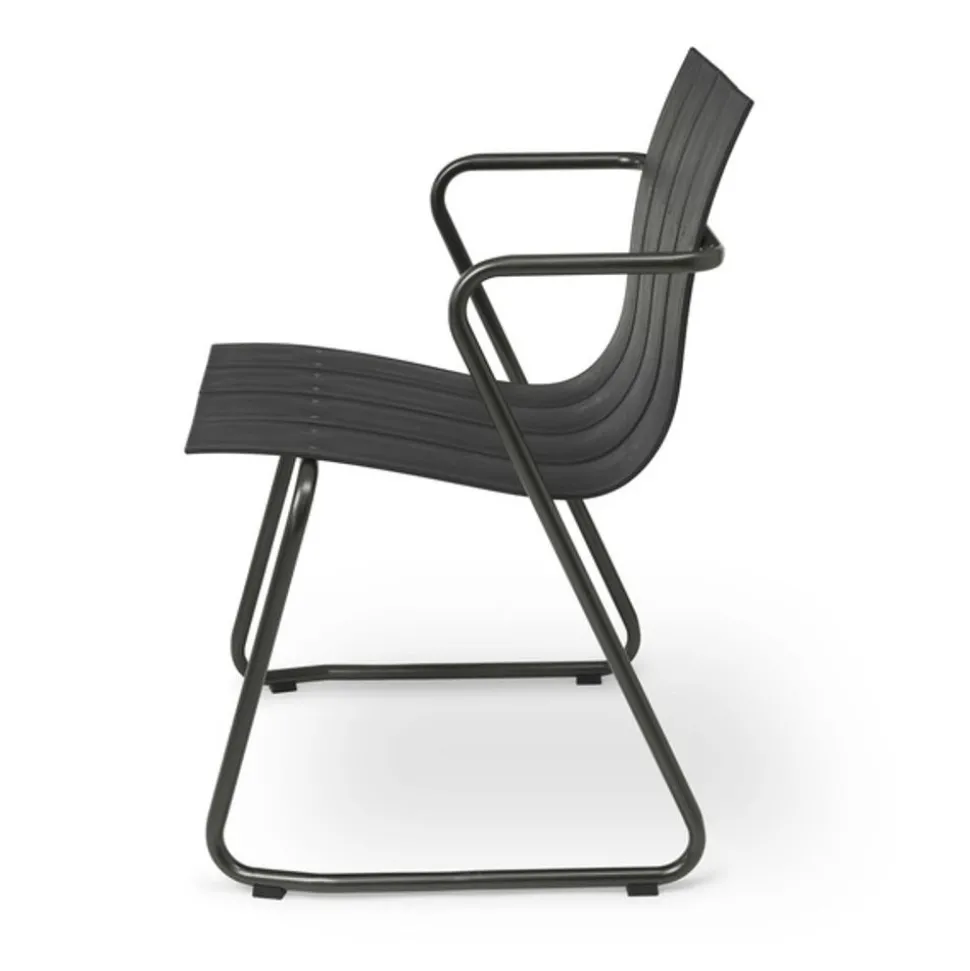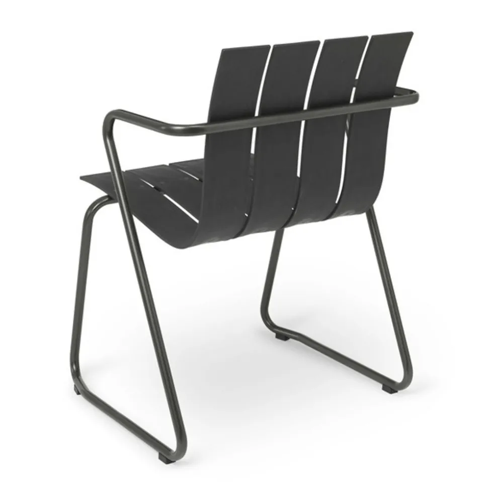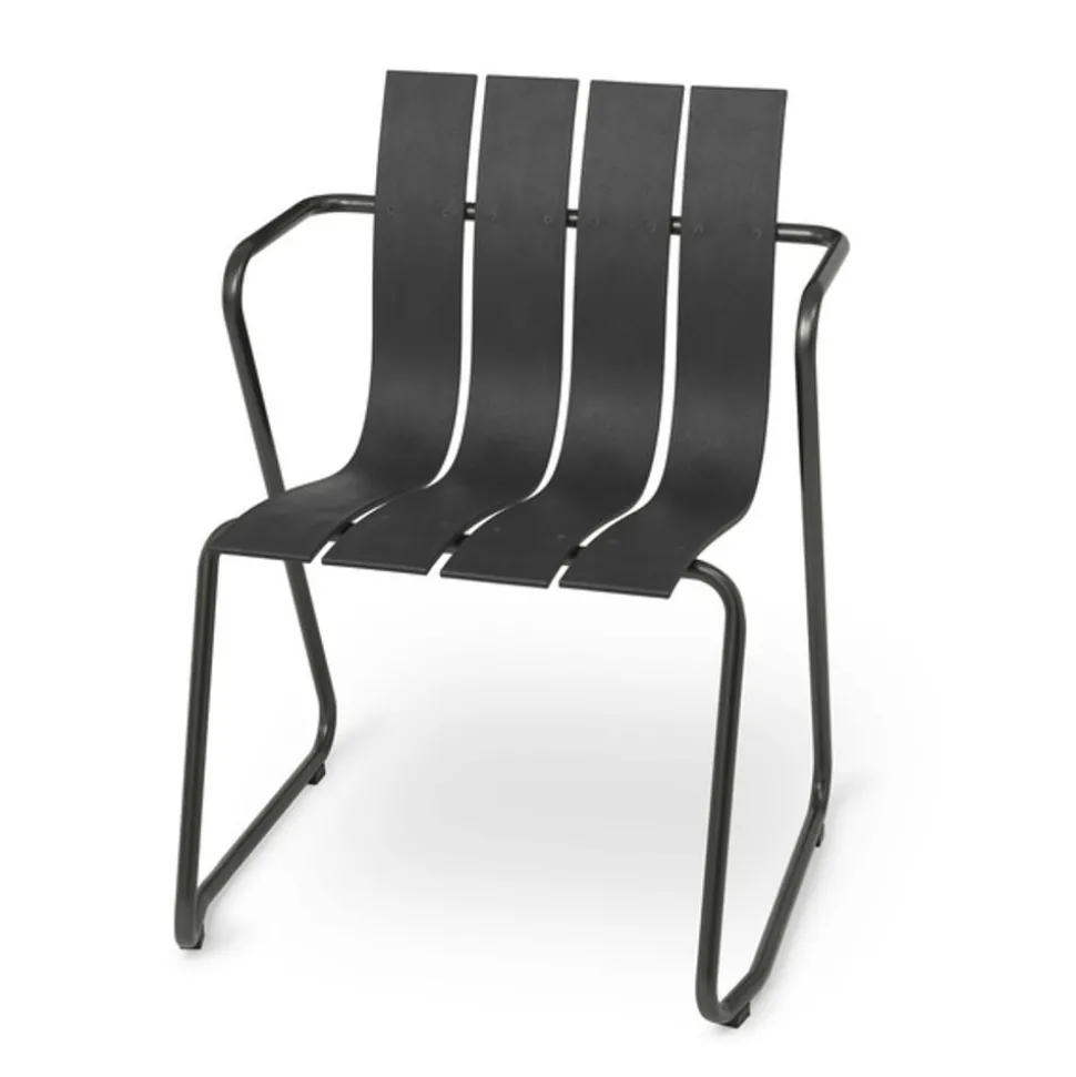 Der Stuhl besteht aus einem eleganten, minimalistischen Gestell aus Stahl, das sich perfekt in die ergonomische Form einfügt. Das Gestell bildet den Rahmen für die vier charakteristischen Lamellen, die den menschlichen Proportionen angepasst sind. Die langlebigen Materialien und das schlichte Design eignen sich für den Einsatz im Freien und sind die ideale Gartengarnitur für die moderne Terrasse oder den Außenbereich.