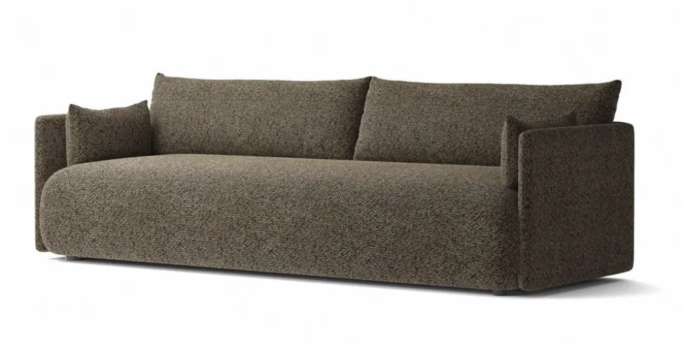 Inspiriert durch das Konzept der Ausgewogenheit ist das Offset-Sofa ein Möbelstück, das nicht nur den Komfort in den Vordergrund stellt, sondern auch das Auge zufrieden stellt. Das bodenständige Design mit den großen Kissen und Polstern verleiht dem Sofa einen monumentalen Ausdruck, der eine Plattform im Raum schafft, die Entspannung und Gemütlichkeit bietet.