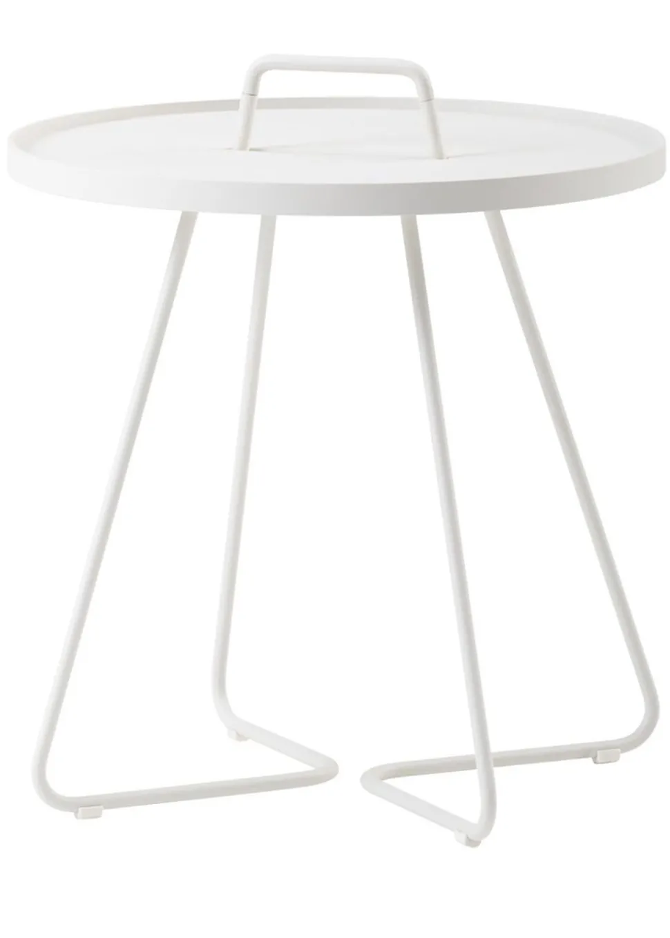 Die On-the-move-Serie wurde von Strand+Hvass entworfen und besteht aus leichten und eleganten Beistelltischen in verschiedenen Farben und Größen. Der Tisch ist aus Aluminium gefertigt und die Tischplatte ist abnehmbar und kann als Tablett verwendet werden. Die Beistelltische sind äußerst funktionell und elegant, da sie mit dem Griff leicht angehoben werden können.