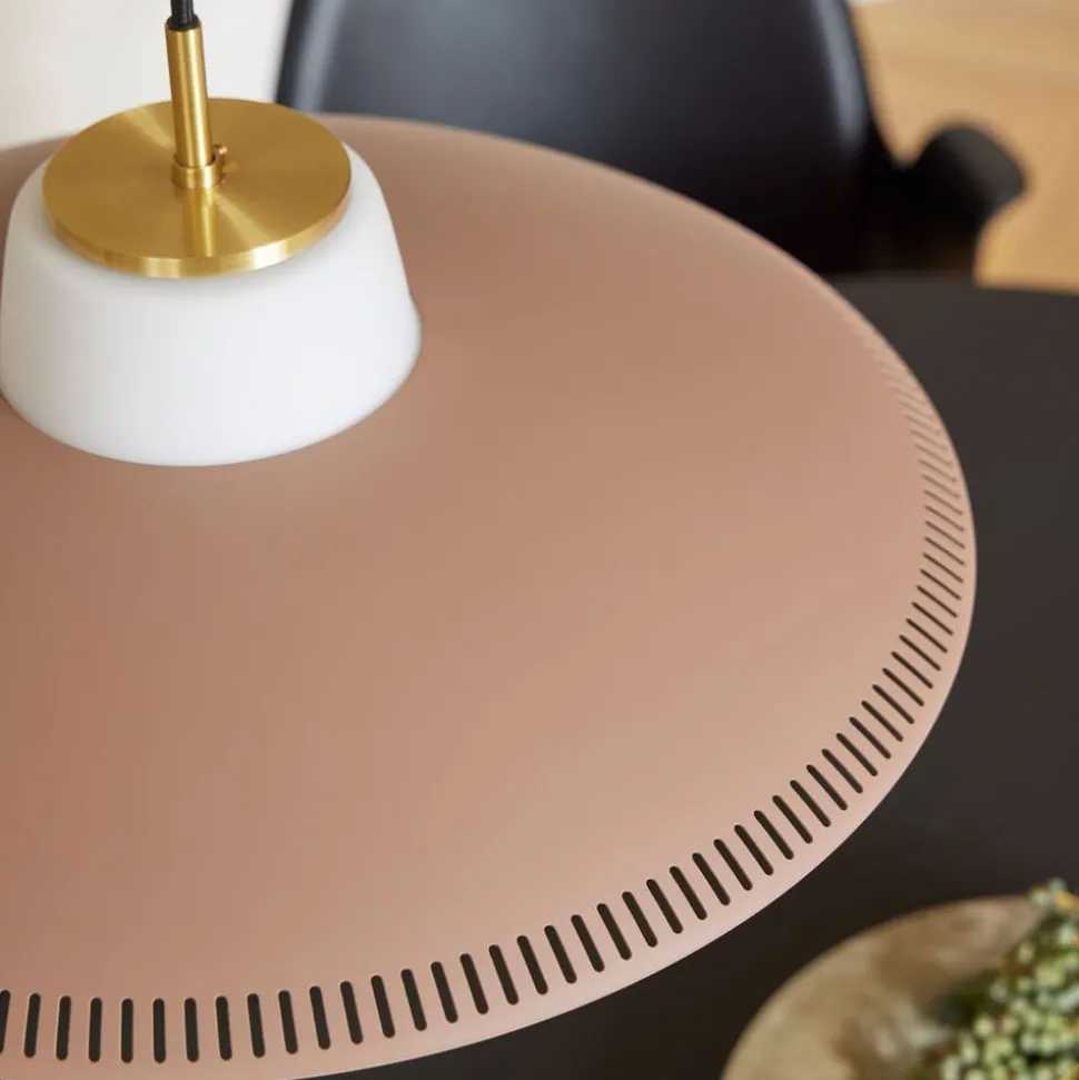 Opal Shade, entworfen vom dänischen Beleuchtungsdesigner Svend Aage Holm-Sørensen, basiert auf der Liebe, die viele Lampendesigner und Beleuchtungsmeister in den letzten Jahrzehnten für Opalglas empfunden haben. Das diffuse und gedämpfte Licht der Opal Glass schafft eine attraktive Atmosphäre, die zum Verweilen im Raum einlädt. Der breite Metallschirm der Leuchte trägt dazu bei, ein konzentriertes Licht über dem Tisch zu erzeugen, während die Rillen des Schirms dazu beitragen, den gesamten Raum in dem besonderen Licht zu erhellen, das Opalglas abgibt. Mit einer Auswahl an vertrauten Farben aus dem warmen nordischen Universum sowie raffinierten Messingdetails hat die Lampe einen retro-modernen Look, der sich leicht in der Wohnung einrichten lässt.