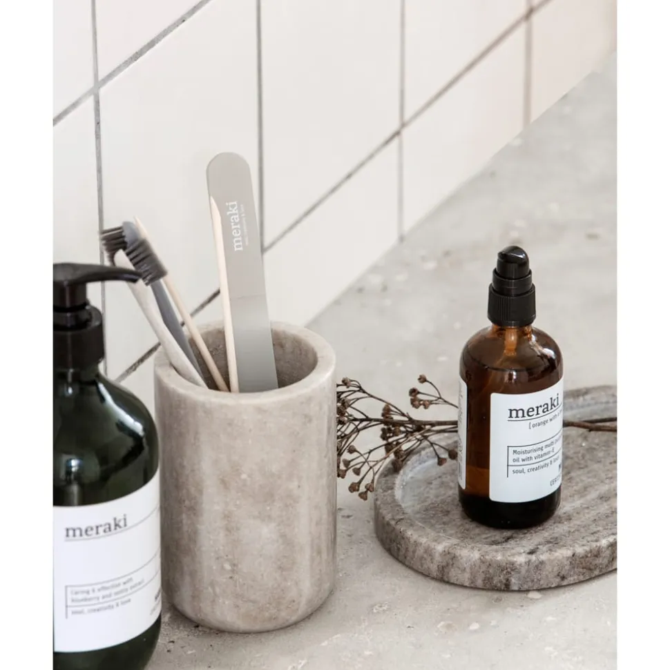 Ideal für die Aufbewahrung von Zahnbürsten, Zahnpasta oder Schminkpinseln, hilft dieser Becher dabei, Ihre täglichen Utensilien auf elegante Weise zu organisieren. Stellen Sie ihn ins Badezimmer oder kombinieren Sie ihn mit anderen Materialien und Farben, um einen einzigartigen und persönlichen Look in Ihrem Zuhause zu schaffen.