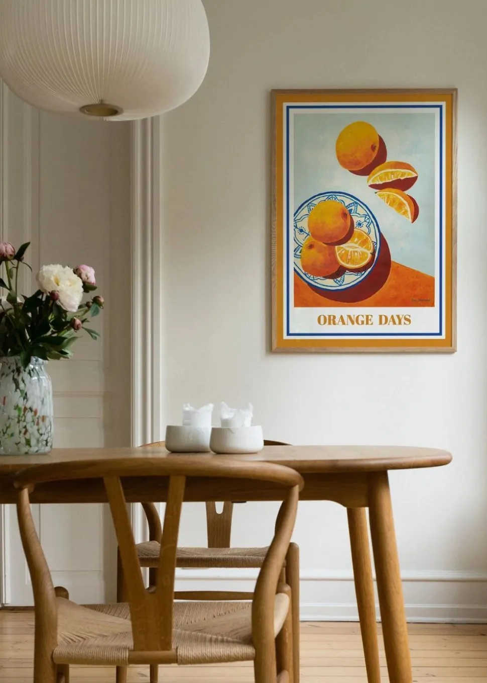 Tauchen Sie ein in eine Welt voller leuchtender Farben und unbestreitbarer Schönheit mit dem Kunstposter Orange Days der talentierten Künstlerin Nya Hegelund, das exklusiv für geschaffen wurde. Dieses einzigartige Poster besticht durch seine intensiven Orangetöne, die im Kontrast zu der bezaubernden, blau gemusterten Schale stehen.