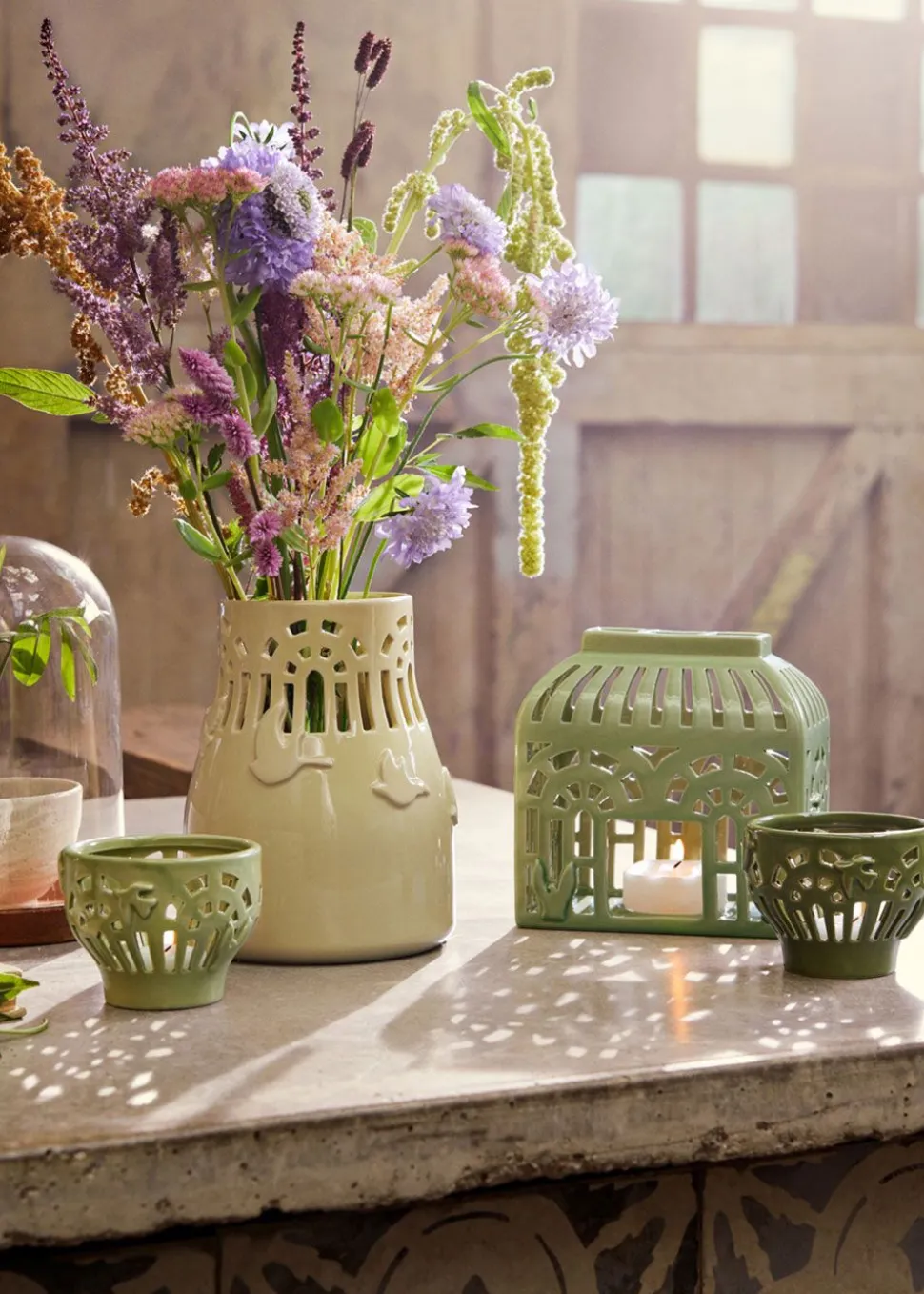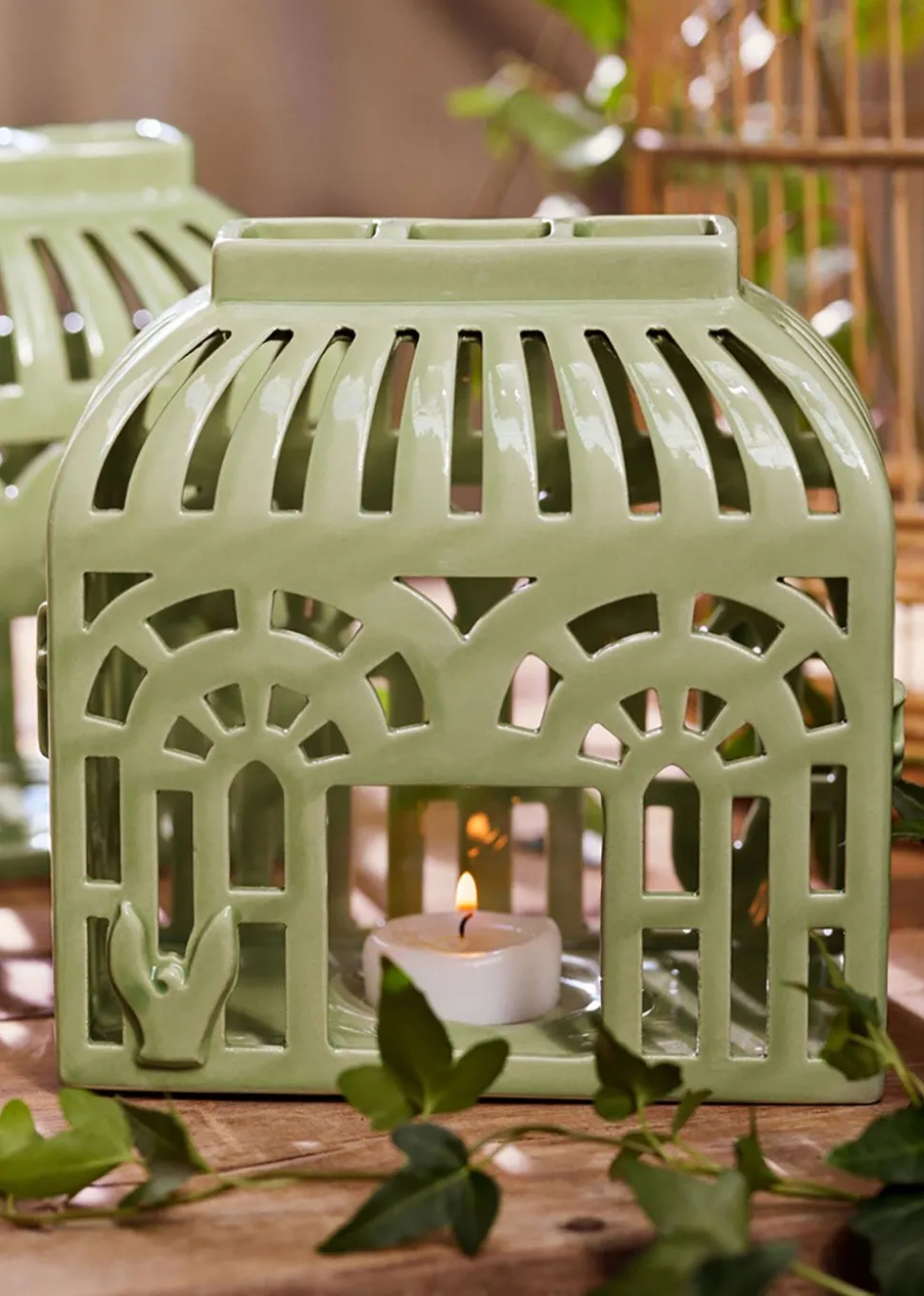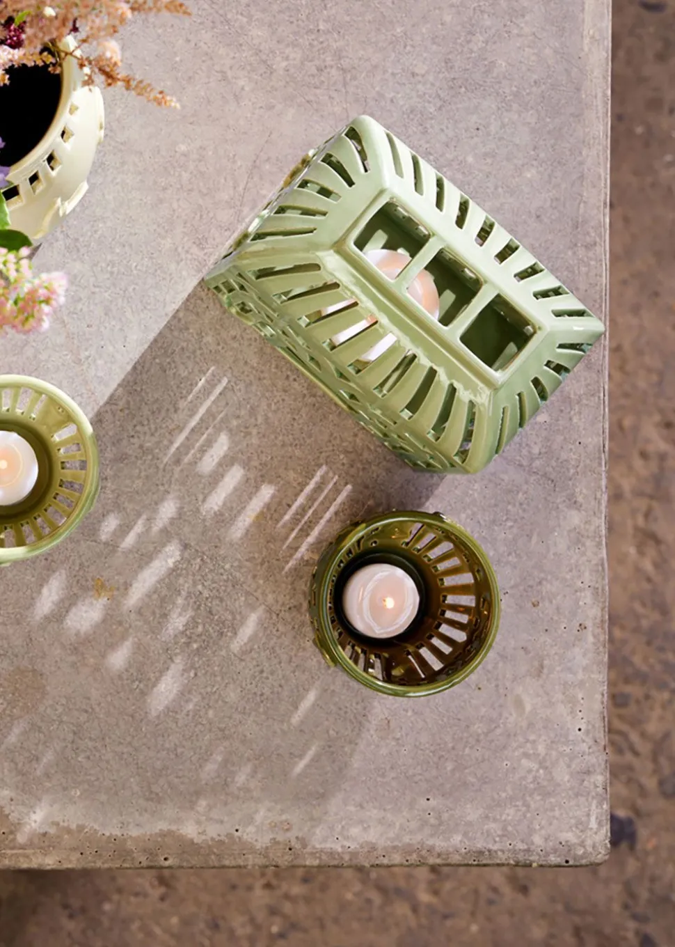 Orangery Lighthouse von ist ein schöner Leuchtturm für Teelichter, der eine gemütliche und entspannte Atmosphäre in Ihrem Zuhause schafft. Er ist aus Keramik gefertigt und hat eine frische frühlingsgrüne Farbe, die die Natur in Ihr Zuhause bringt. Das schlichte und elegante Design macht ihn zu einem perfekten Geschenk für jede Gelegenheit.