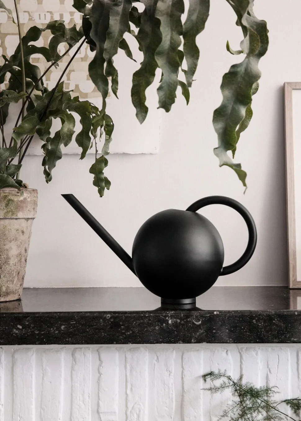 Die ORb-Wasserkrug von ist mit ihrem schlichten grafischen Design eine schöne und funktionale Gießkanne zugleich. Die Kanne fasst trotz ihrer geringen Größe bis zu 2 Liter Wasser und ist zusammen mit den schönen nordischen Details perfekt geeignet, um sowohl als Kleinplastik zu stehen als auch Pflanzen innen und außen zu bewässern.