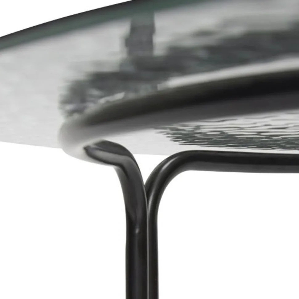 Schöner Orbit Couchtisch von . Der Tisch ist aus Glas und Eisen in einer schönen schwarzen Farbe hergestellt. Der Orbit Coffee Table ist der perfekte Couchtisch für Ihr Wohnzimmer. Da es sich um einen sehr ruhigen und stilvollen Tisch handelt, der zu jeder Farbe passt.