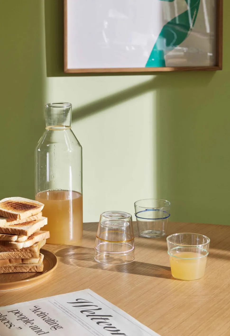 Der Orbit Krug eignet sich sowohl für den täglichen Gebrauch als auch für festliche Anlässe und schafft eine einladende Atmosphäre auf jedem Esstisch. Für einen harmonischen Look kombinieren Sie ihn mit den Orbit Trinkgläsern, deren goldener Ton einen Hauch von Wärme und Persönlichkeit verleiht. Stellen Sie ihn als dekoratives Detail auf das Küchenregal oder verwenden Sie ihn als farbenfrohen Kontrast zu einem minimalistisch gedeckten Tisch.