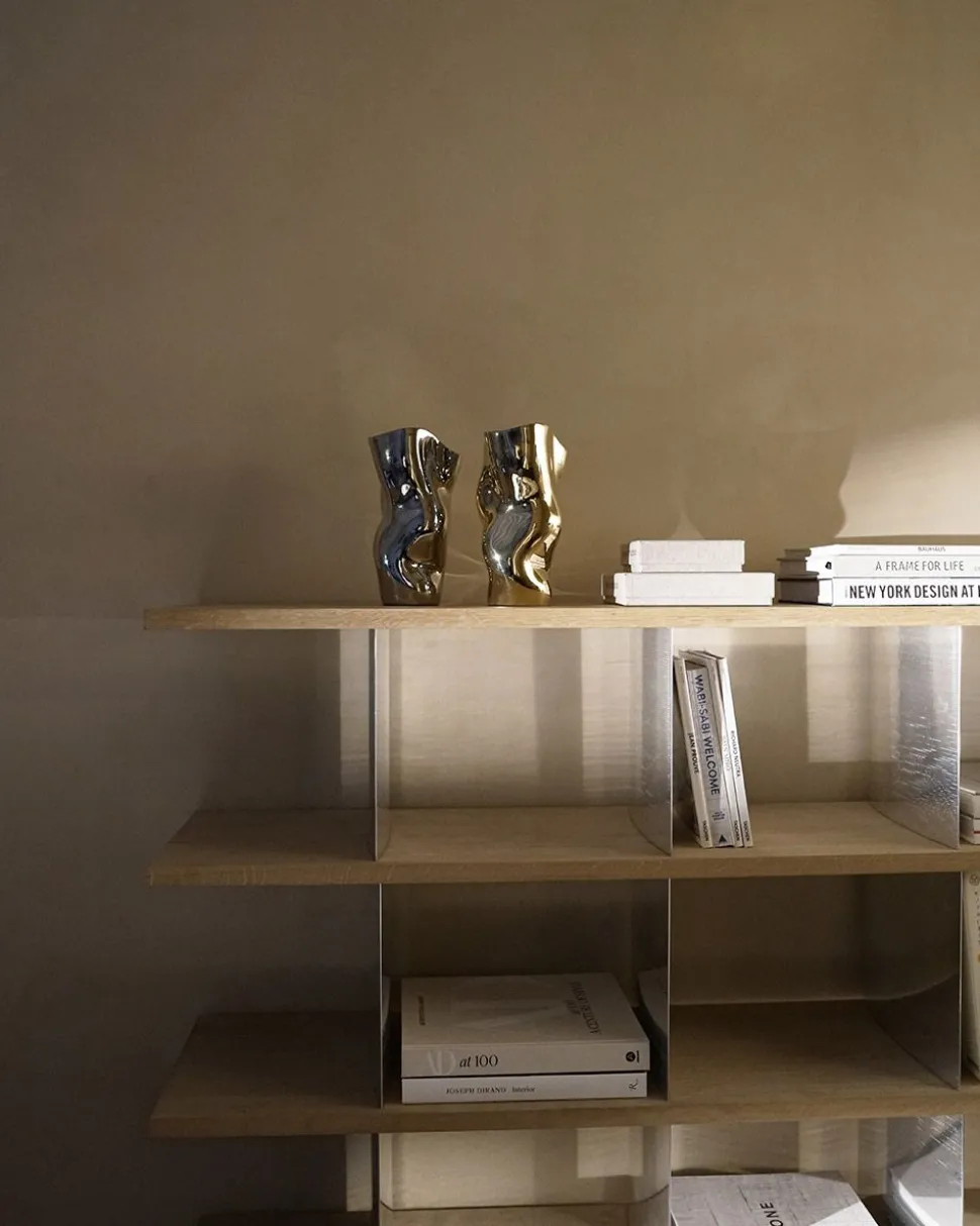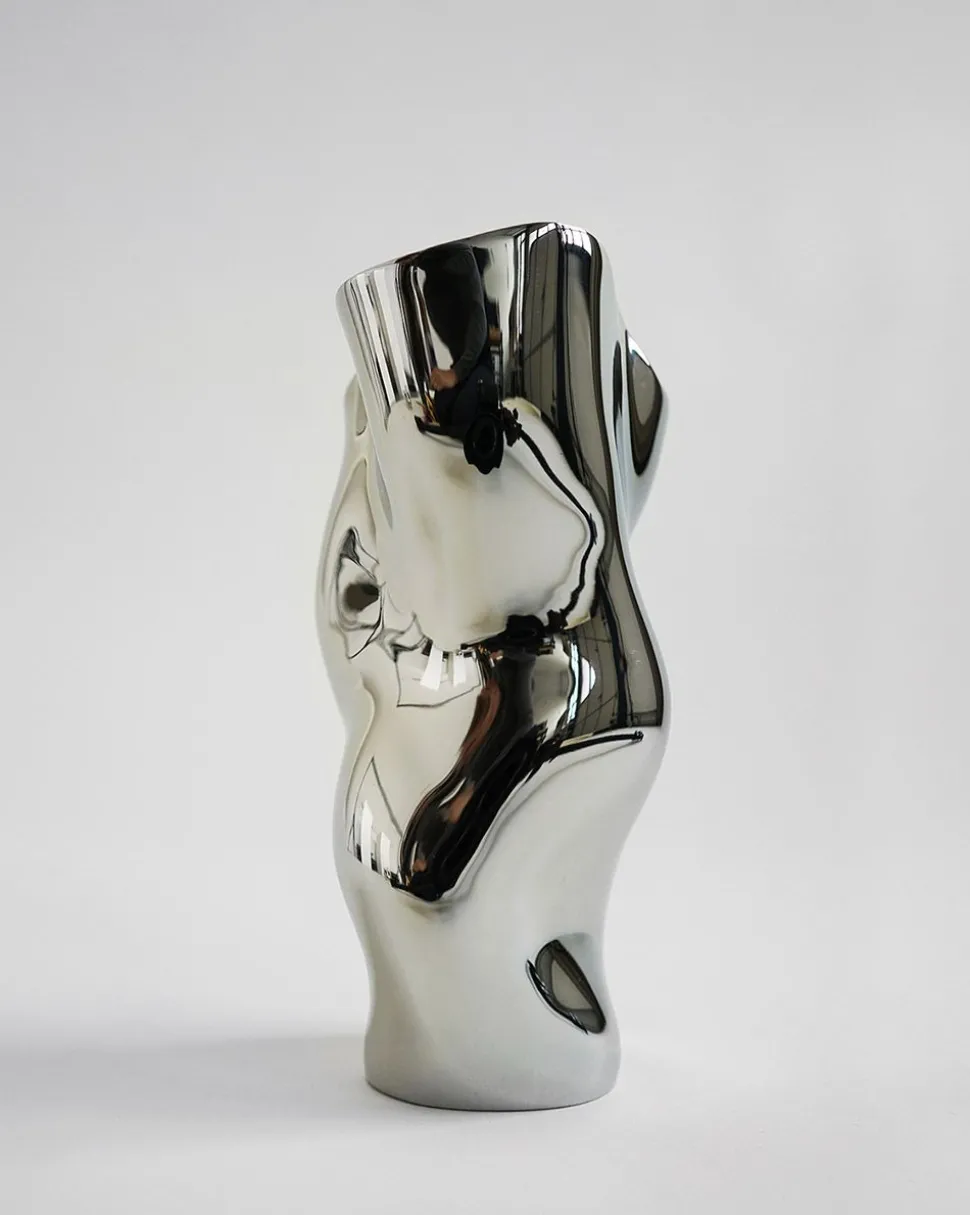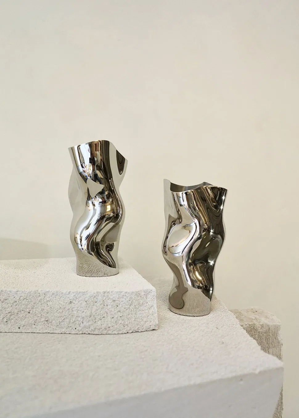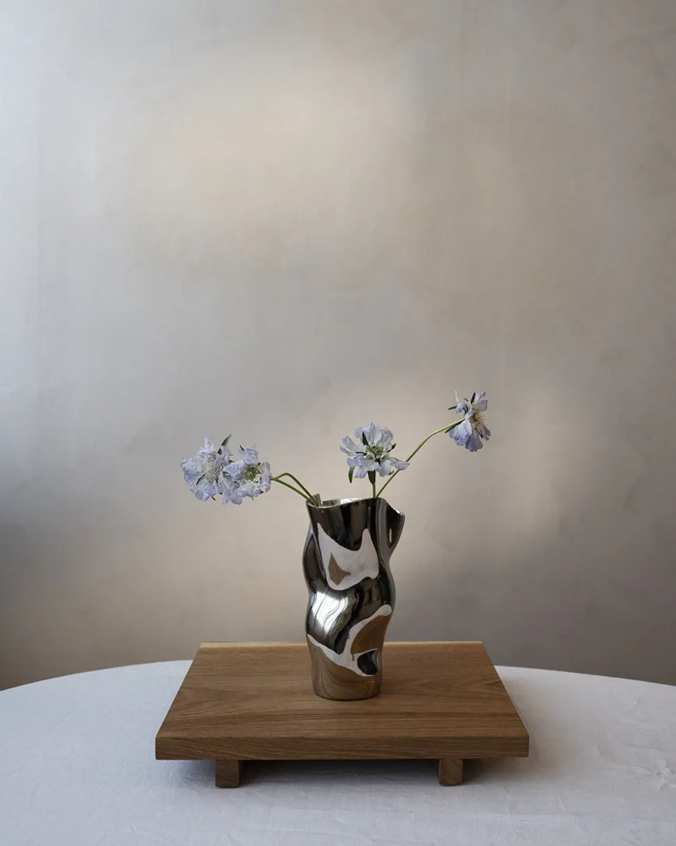 DieOstrea-Serie entstand im Sommerhaus der Familie Hein, wo das Meer und die umgebende Natur zur Hauptinspiration für das Design wurden, das den Anstoß für das HEIN Studio gab. Die organische und asymmetrische Form der Vase ahmt die Formen der Korallen und Steine des Meeres nach und ist in glänzend poliertem Metall ausgeführt.