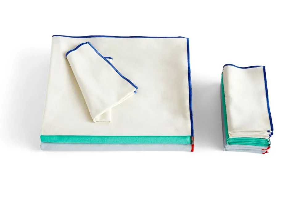 Outline Tischtuch von . Die schönen Farben der Tischdecke kombiniert mit einem kontrastierenden Rand bilden einen schlichten, aber eleganten Hintergrund für den gedeckten Tisch. Die Tischdecke ist aus einer Baumwollmischung hergestellt und in verschiedenen Größen und Farben erhältlich.