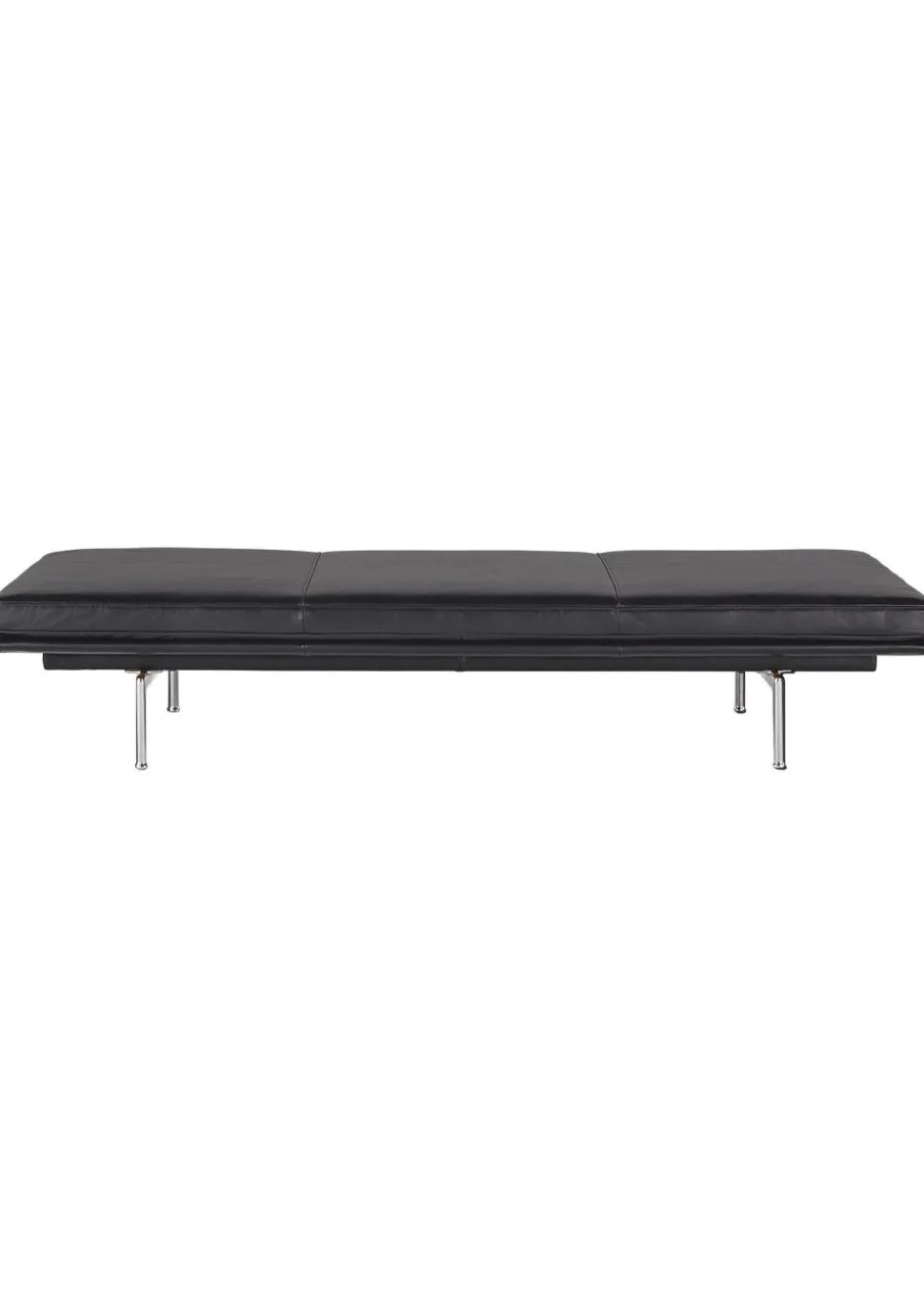 Outline Daybed ist eine elegante Ergänzung der Outline-Serie. Das Daybed hat einen weichen und bequemen Sitz. Das Design ist von architektonischen Linien geprägt. Die schlanken Stahlbeine fügen dem Gesamtausdruck des Daybed ein raffiniertes Aussehen hinzu. Für das Tagesbett kann ein Kissen erworben werden, das zusätzlichen Komfort und eine Kopfstütze bietet.