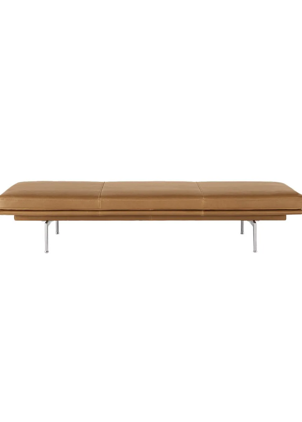 Outline Daybed ist eine elegante Ergänzung der Outline-Serie. Das Daybed hat einen weichen und bequemen Sitz. Das Design ist von architektonischen Linien geprägt. Die schlanken Stahlbeine fügen dem Gesamtausdruck des Daybed ein raffiniertes Aussehen hinzu. Für das Tagesbett kann ein Kissen erworben werden, das zusätzlichen Komfort und eine Kopfstütze bietet.
