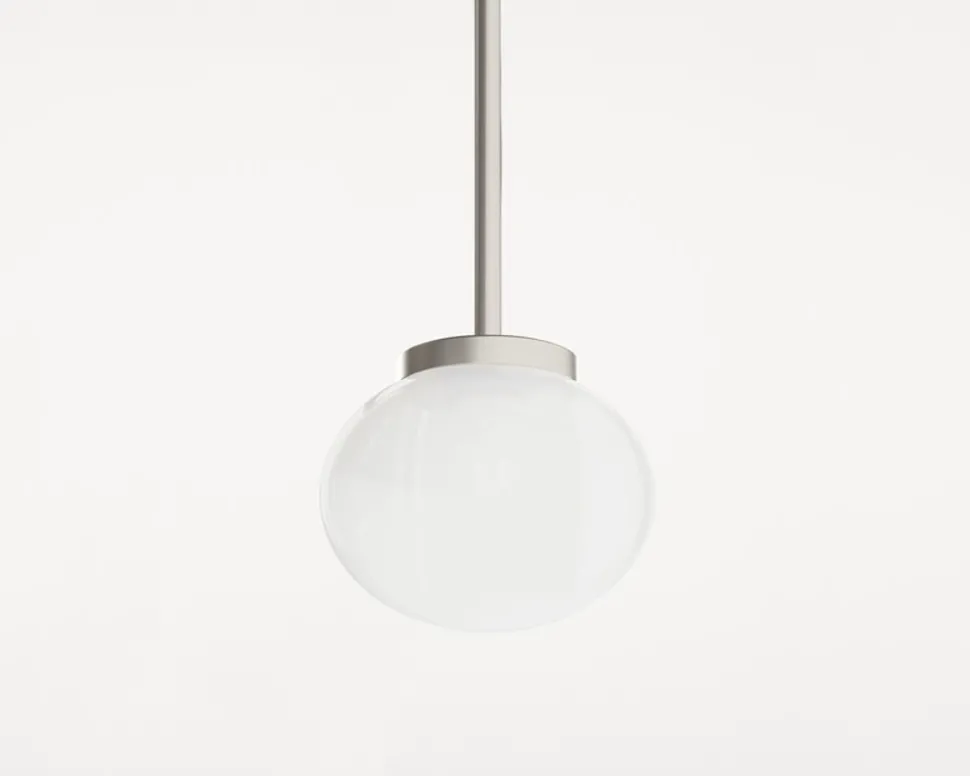 Die Ovoid Pendant Light Single von , entworfen von Studio im Jahr 2023, ist eine minimalistische Leuchte, die moderne Eleganz verkörpert. Die schlichte Struktur aus Edelstahl harmoniert mühelos mit der mundgeblasenen Glaskugel und schafft ein raffiniertes Stück, das jeden zeitgenössischen Raum ergänzt. Die Ovoid Pendelleuchte ist nicht nur eine funktionale Beleuchtungsquelle, sondern auch ein Statement, das das Ambiente von Esszimmern und Büros gleichermaßen aufwertet.