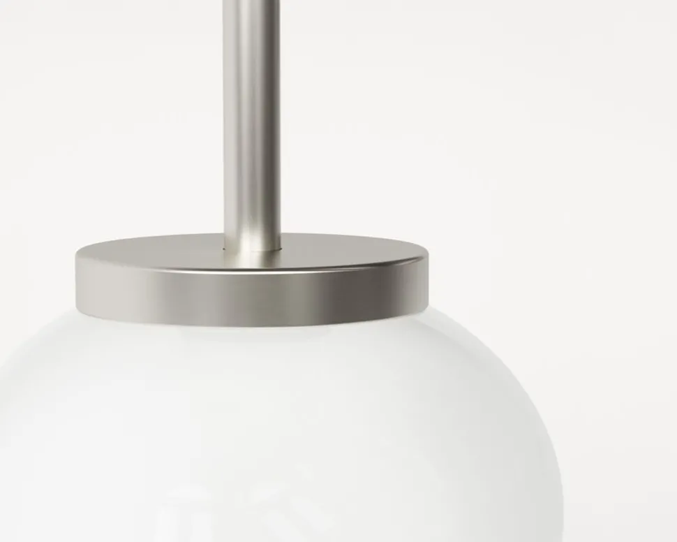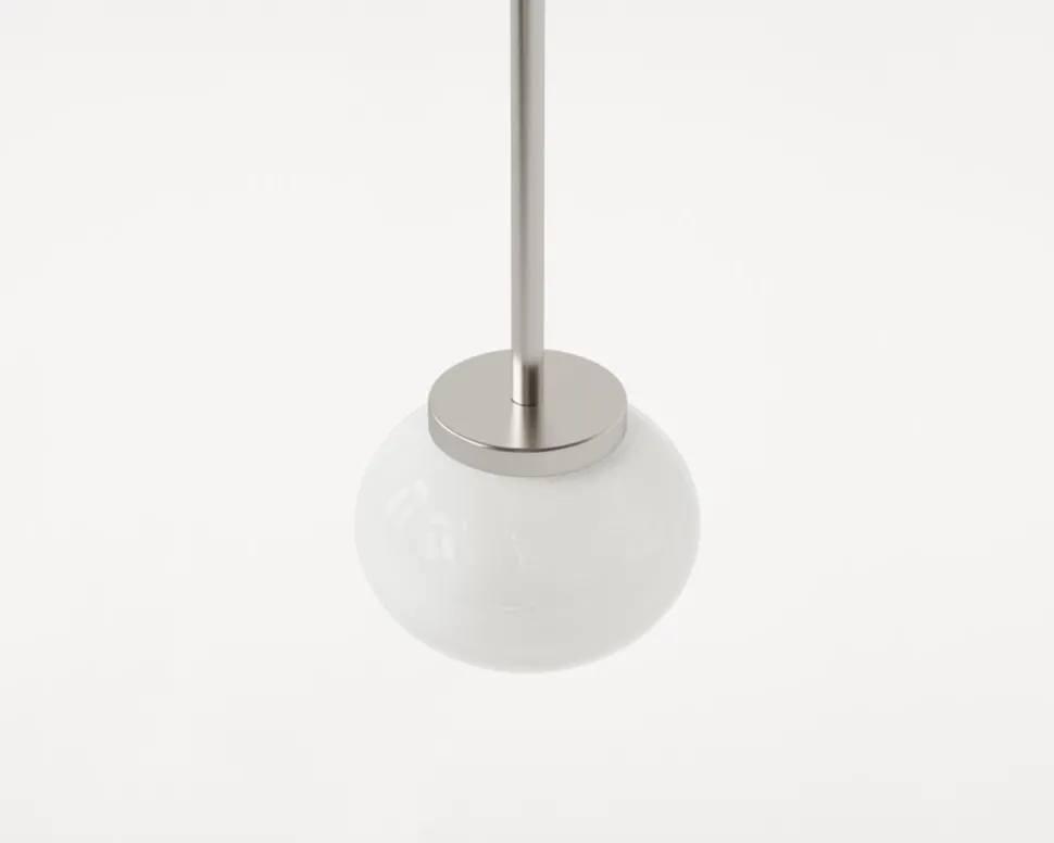 - Materialien: Stab aus Edelstahl, mundgeblasene Opalglaskugeln.