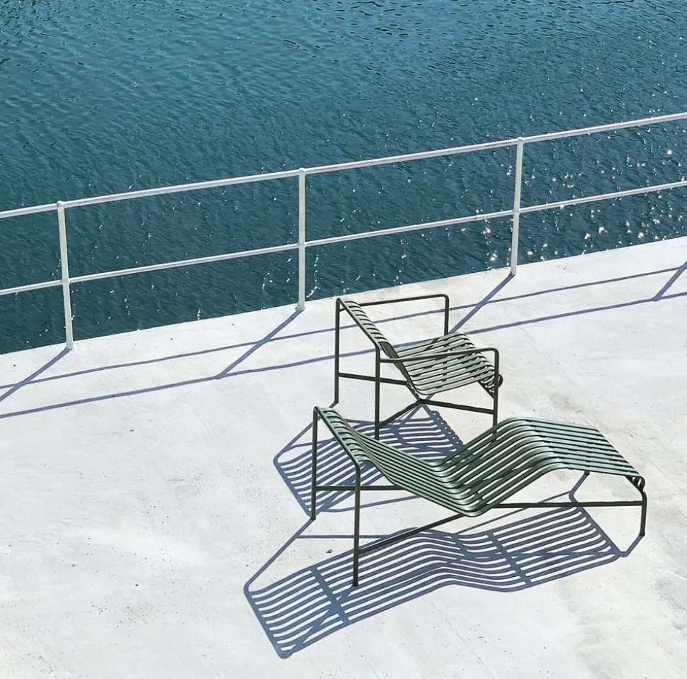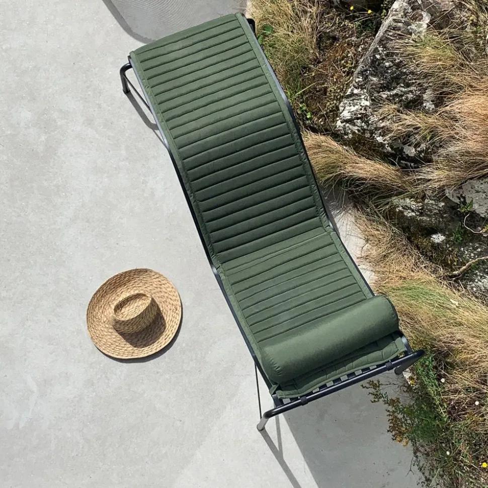 Die klassische Palissade Chaise Lounge ist aus Stahl mit einer starken Pulverbeschichtung in organischen Farben oder aus verzinktem Stahl gefertigt. Die Lebensdauer der Möbel wird durch eine Feuerverzinkung verlängert, bei der der Stahl in geschmolzenes Zink getaucht wird, wodurch eine glänzende Oberfläche entsteht, die vor Rost schützt und wartungsfrei ist. Die Kollektion ist sowohl für den Innen- als auch für den Außenbereich geeignet und zeichnet sich durch ein universelles Design aus, das sich sowohl für den privaten als auch für den professionellen Gebrauch eignet.