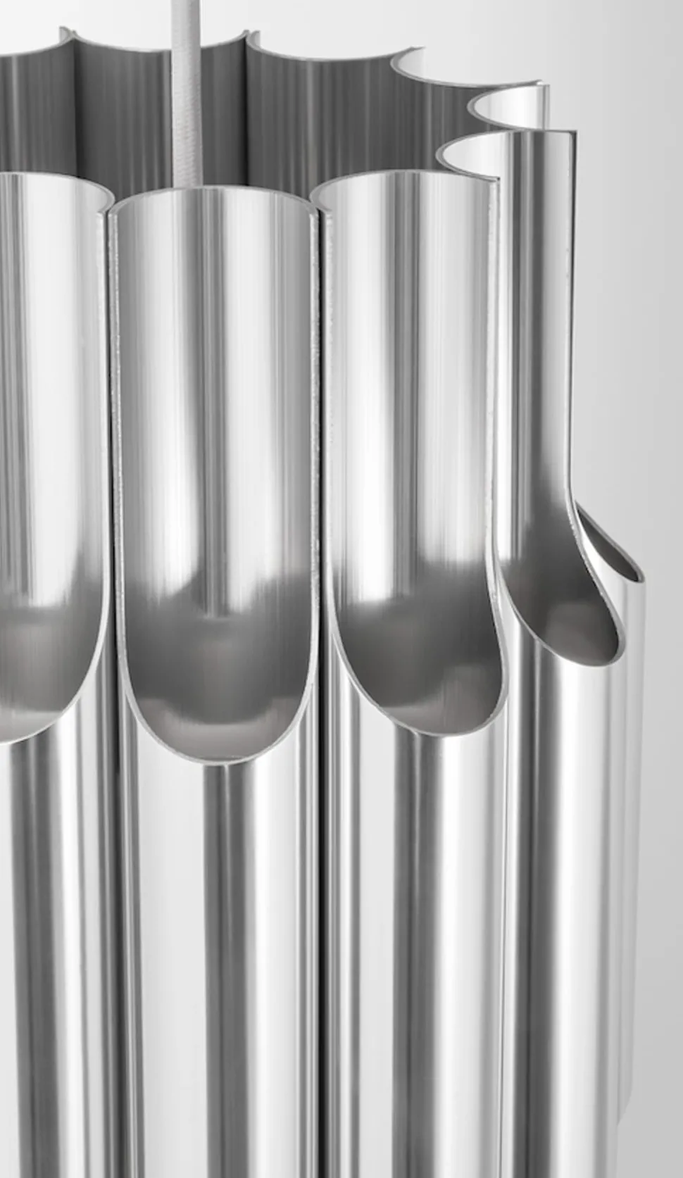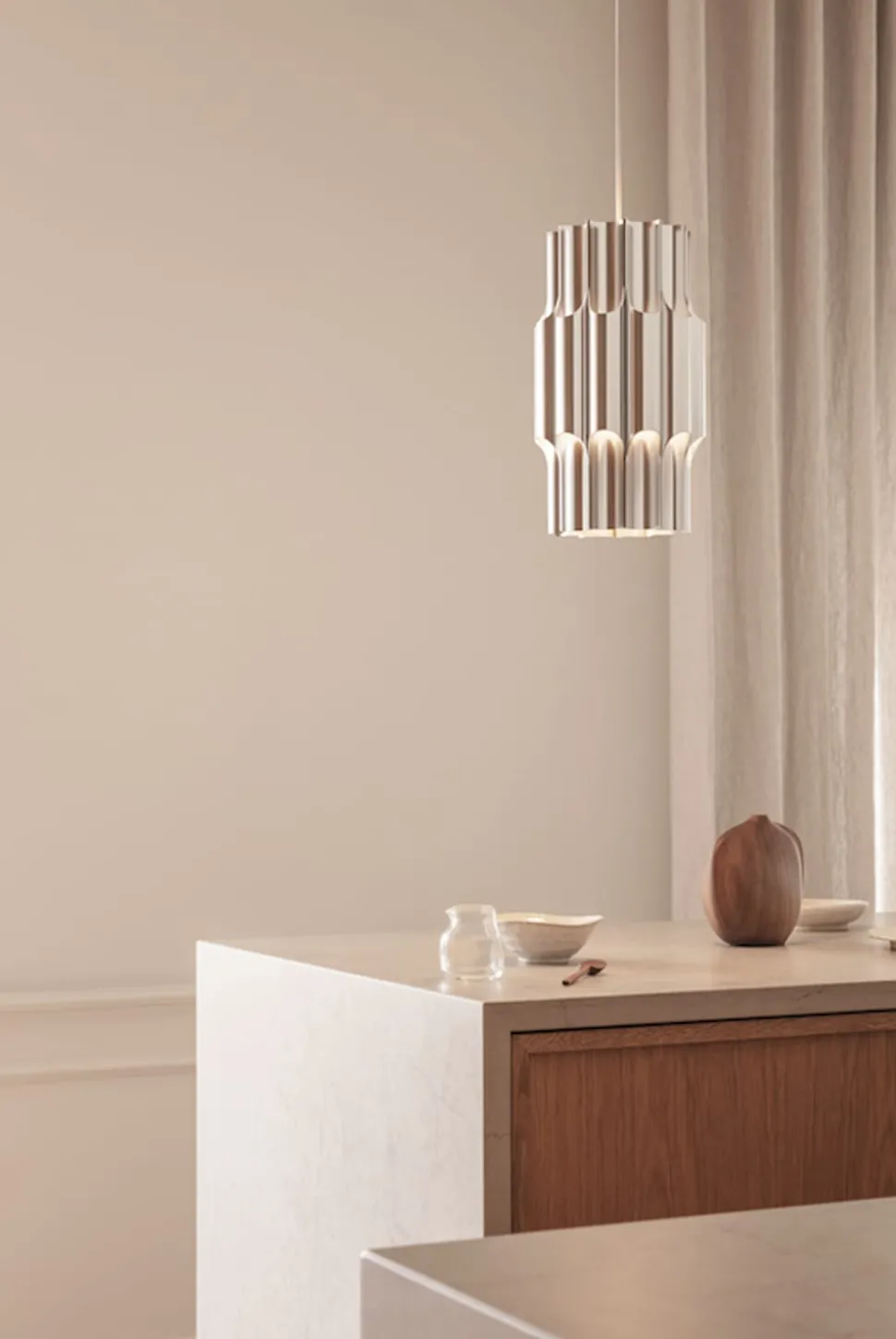 Die PAN Serie, entworfen von Bent Karlby, ist eine moderne Variante der klassischen Designelemente, die das Design der 1970er Jahre zeitgemäß machen. Die Leuchte hat eine eloxierte Aluminiumoberfläche und verfügt über teilweise sichtbare Rohre, die mit den Rohren einer Panflöte verwechselt werden könnten, was der Leuchte auch ihren Namen gibt.