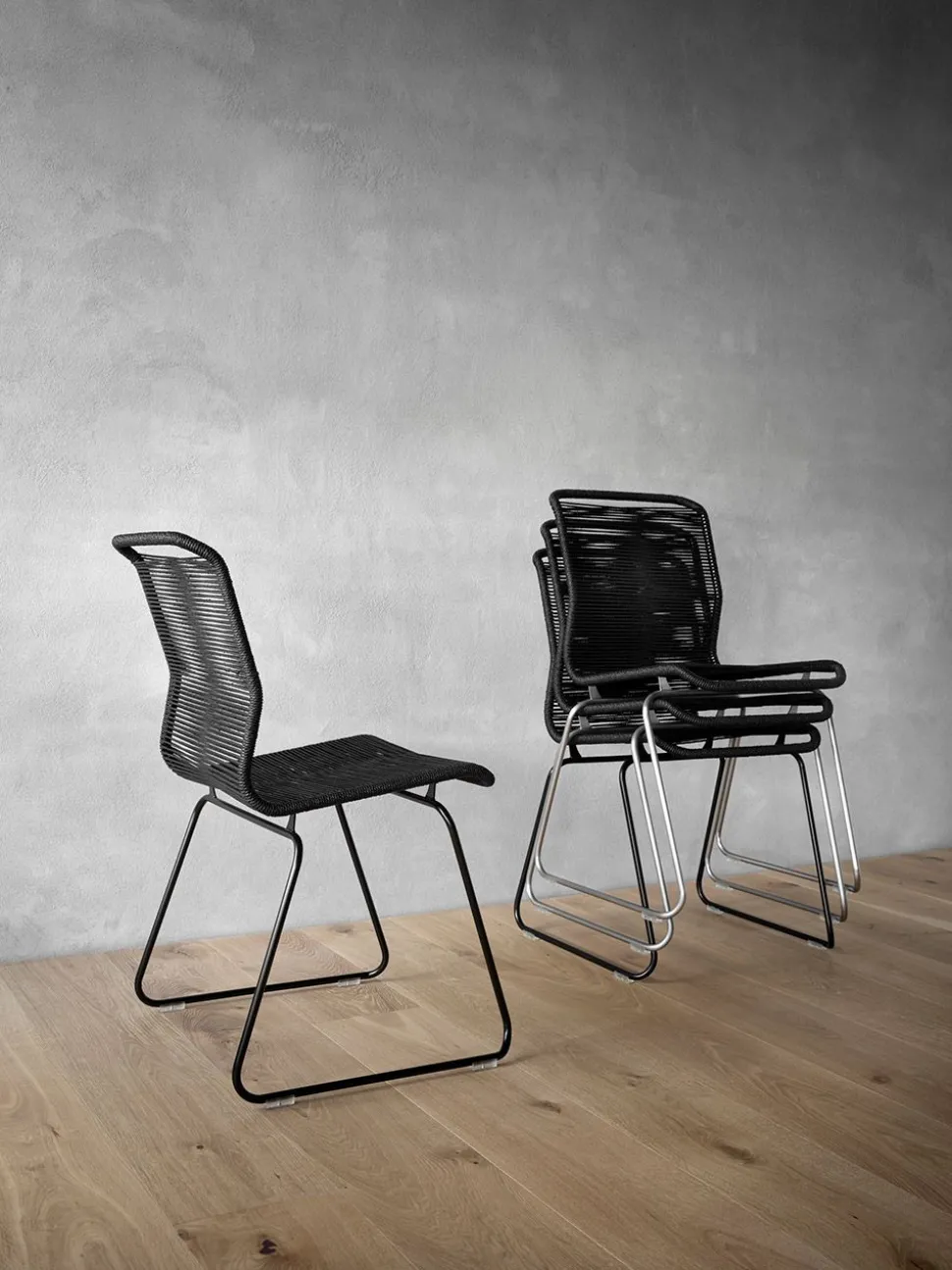 - Materialien Untergestell aus rostfreiem Stahl mit Sitz aus Polyurethan-Schnüren oder FSC-Papier.