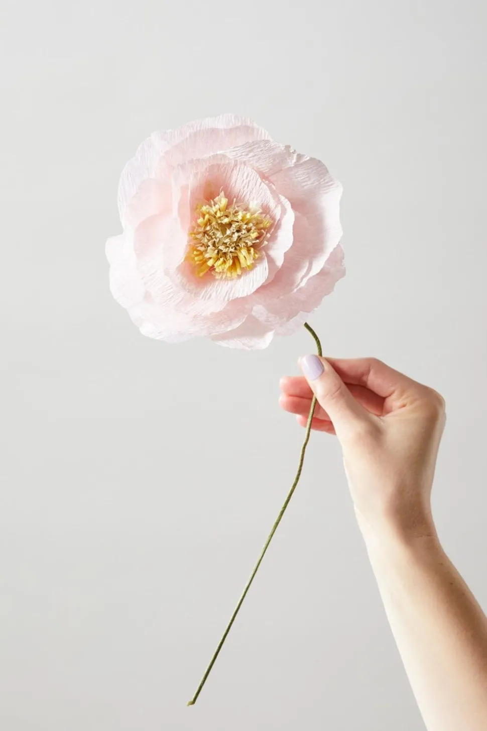 Die schönste Papierblume von . Die Eismohnblume besteht aus farbigem Krepppapier und ist auf einem langen, biegsamen grünen Stiel befestigt. Der Stiel lässt sich leicht in die gewünschte Form und Länge bringen.