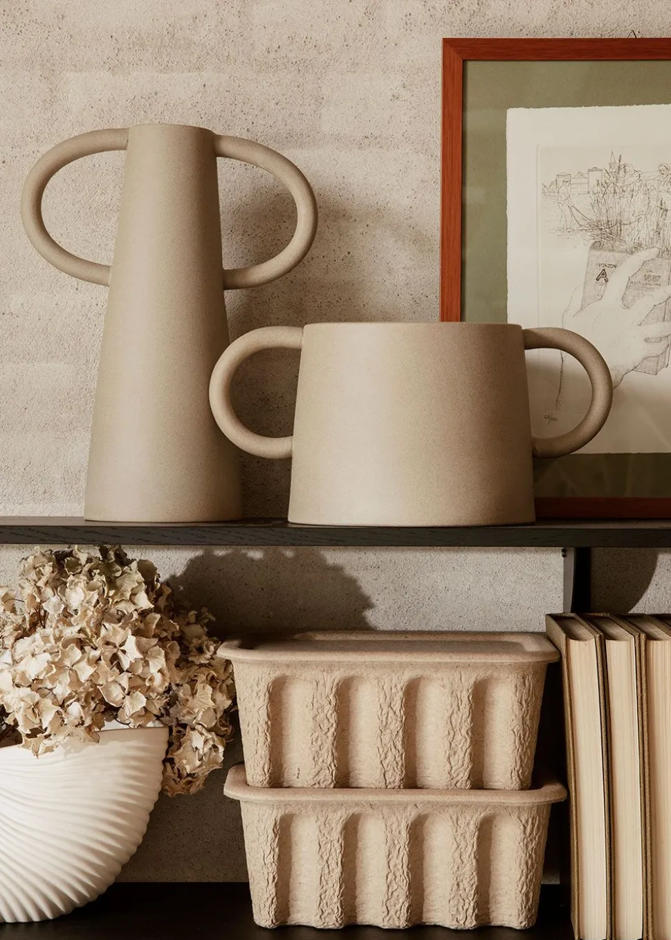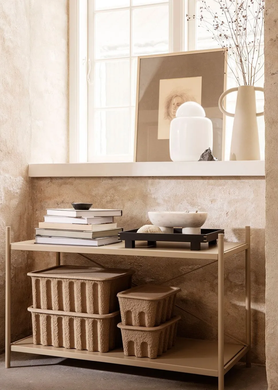 Die schönen und umweltfreundlichen Paper Pulp Boxen von bieten Ihnen eine praktische, leichte und stapelbare Aufbewahrungslösung. Die Schachteln bestehen zu 100 % aus recyceltem Zellstoff, was bedeutet, dass die Schachteln langlebig, aber auch biologisch abbaubar sind. Verwenden Sie die Boxen, um das Zimmer Ihrer Kinder oder Ihr Büro aufzuräumen, die einzige Grenze ist Ihre Fantasie.