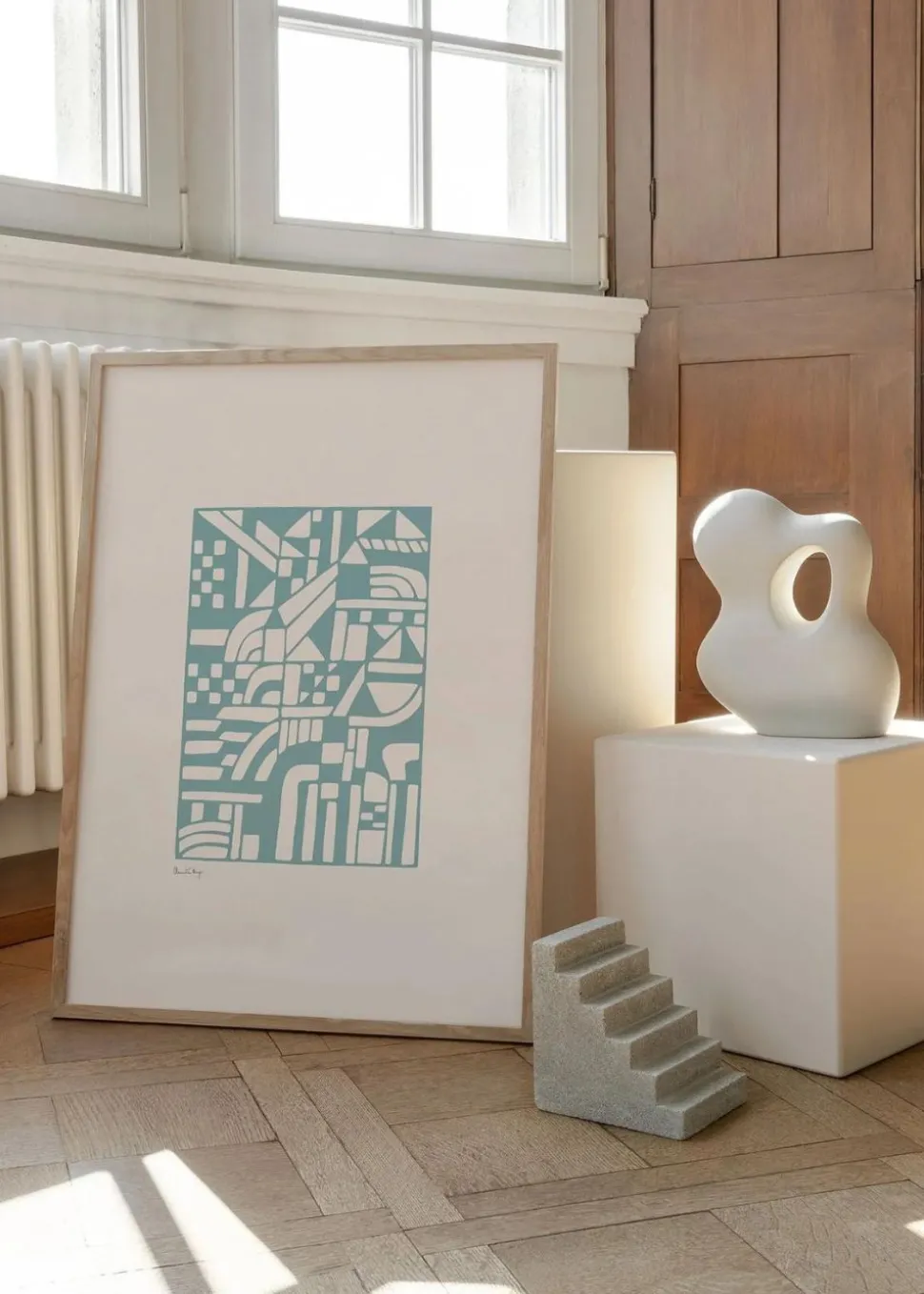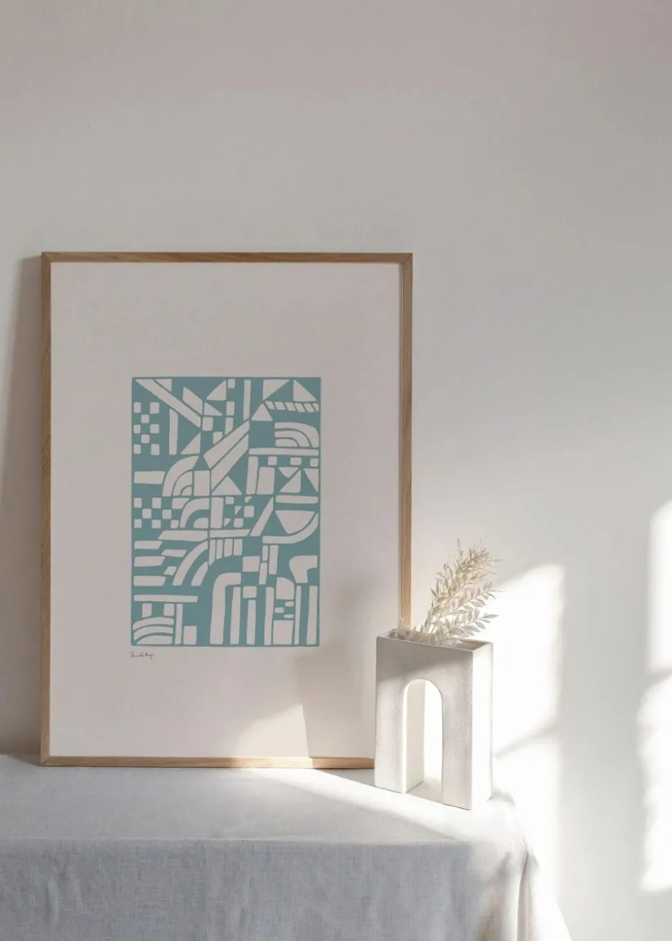 Papercut 08 – Wintergreen Blue ist ein Entwurf des Künstlers Little Detroit. Das Poster hat ein minimalistisches und stilvolles Design. Seine Grundfarbe ist blau-grün, was einen eleganten Look erzeugt. Das Motiv des Posters ist eine abstrakte und geometrische Form, die an verschiedene Schnitte auf einem Papier erinnert. Die verschiedenen Formen sind asymmetrisch, was einen einzigartigen Ausdruck erzeugt.