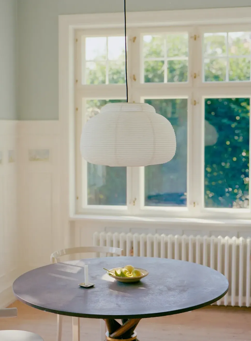 Papier Single Ø80 eignet sich hervorragend über dem Esstisch, in der Diele oder als Teil einer Gruppe in größeren Räumen. Die runde Form und das weiche Licht machen sie ideal, um Ruhe und Kohärenz in der Einrichtung zu schaffen. Kombinieren Sie sie mit natürlichen Materialien und gedeckten Farben für einen nordischen, zeitlosen Look oder lassen Sie sie leicht über einem minimalistischen Ambiente schweben, um einen modernen Kontrast zu schaffen. Die Pendelleuchte passt zu anderen Made By Hand-Designs und lässt sich leicht in private und berufliche Umgebungen integrieren.