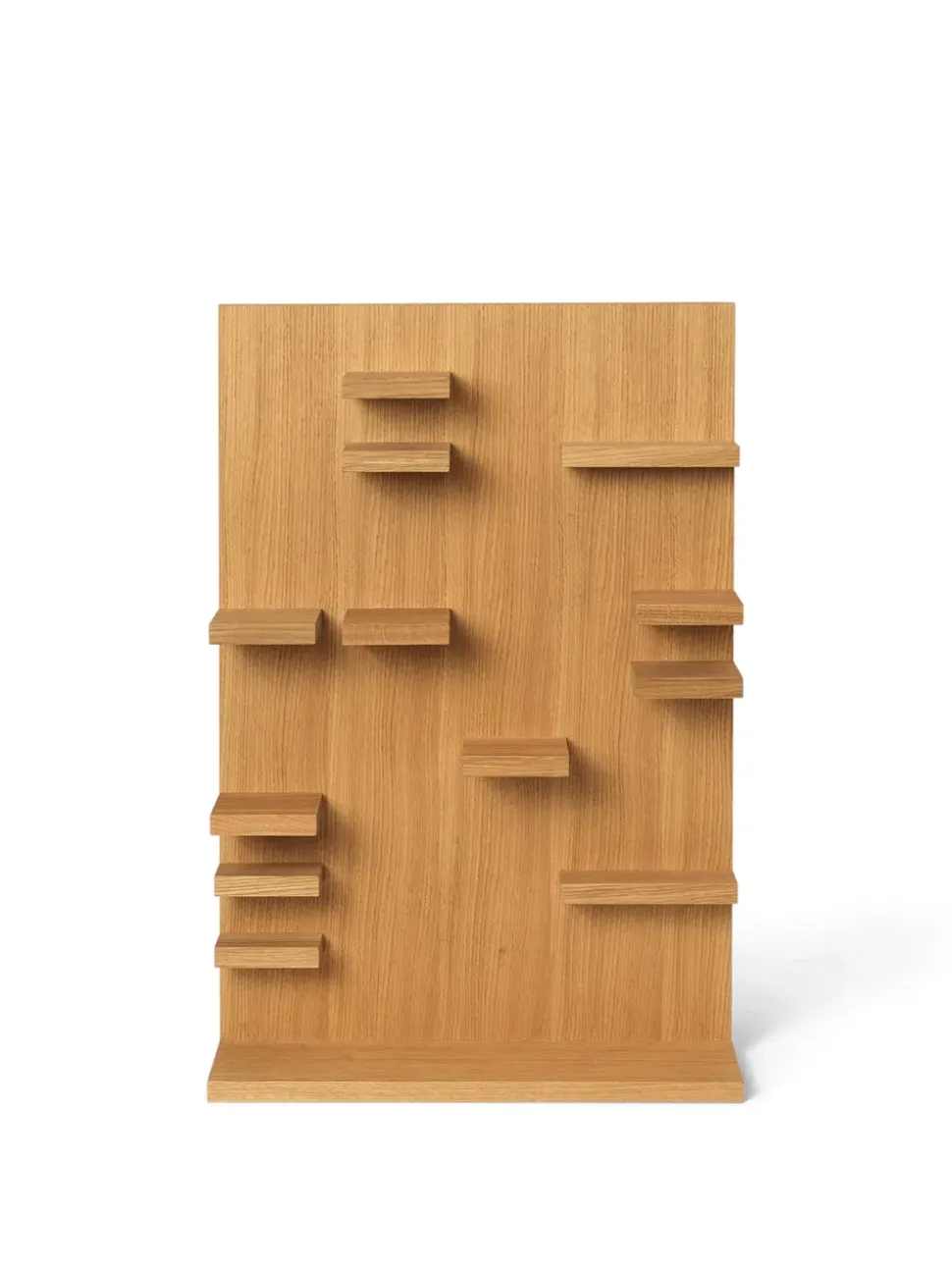 Das Parade Shelf ist inspiriert von dem nostalgischen dänischen Möbelkonzept der „sættekasser“, den traditionellen Fächerkästen, in denen kleine Schätze aufbewahrt werden. In dieser modernen Interpretation, die in Zusammenarbeit mit der Künstlerin Leise Dich Abrahamsen entworfen wurde, bieten kleine Regale mit unterschiedlichen Tiefen die perfekte Plattform, um Lieblingssouvenirs und Erbstücke zu präsentieren.