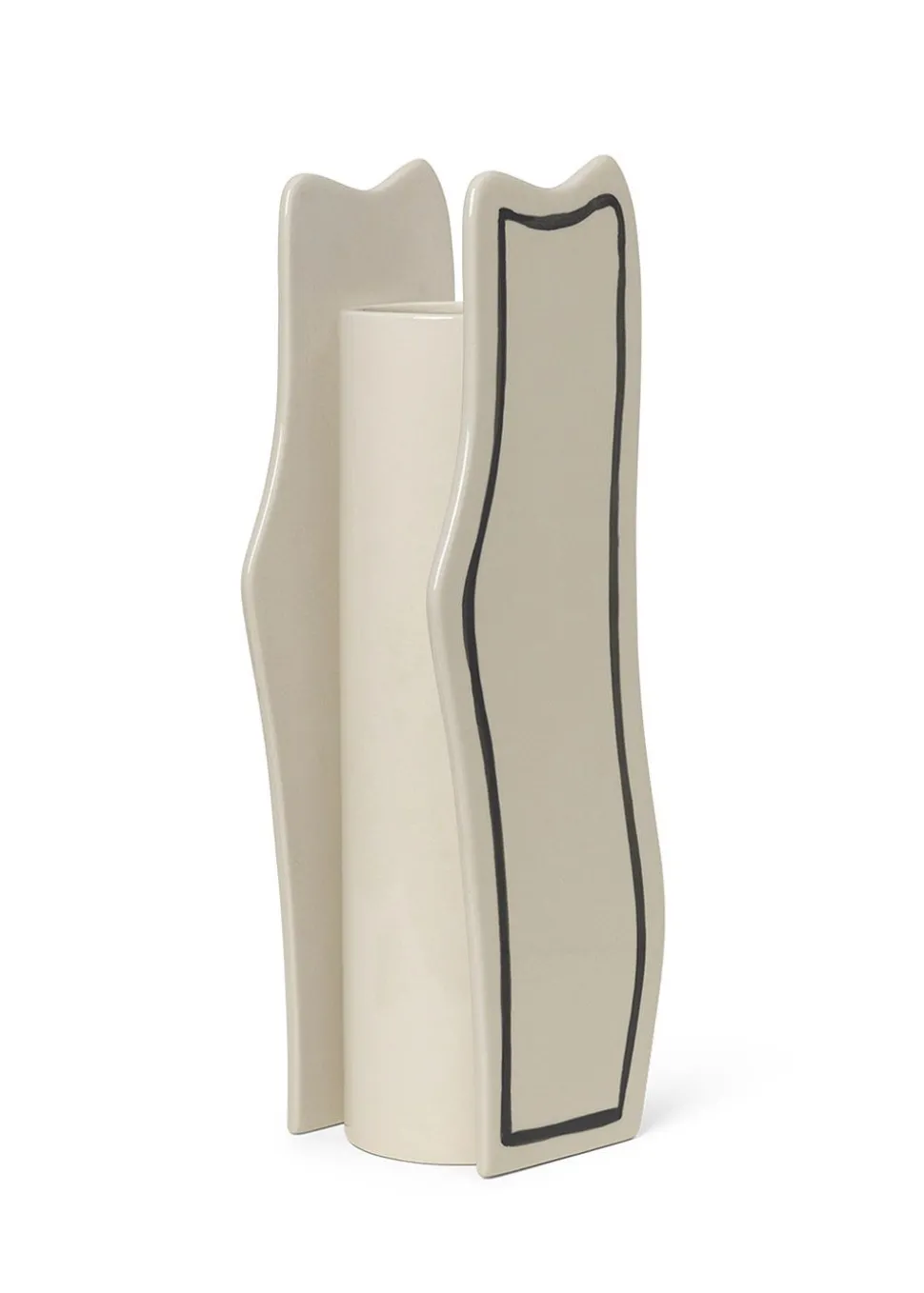 Die minimalistische Paste Vase von hat ein schlichtes und einfaches Design, das sie zu einer stilvollen Ergänzung für jedes Zuhause macht. Mit ihrer zarten Vasenöffnung und ihrem zeitlosen Look in den Farben Off-White und Schwarz passt die Paste Vase perfekt in jede Einrichtung. Die Paste Vase besticht durch ihre ungewöhnlichen und asymmetrischen Formen, die durch eine skurrile schwarze Linie betont werden, die die Konturen der Vase umreißt.