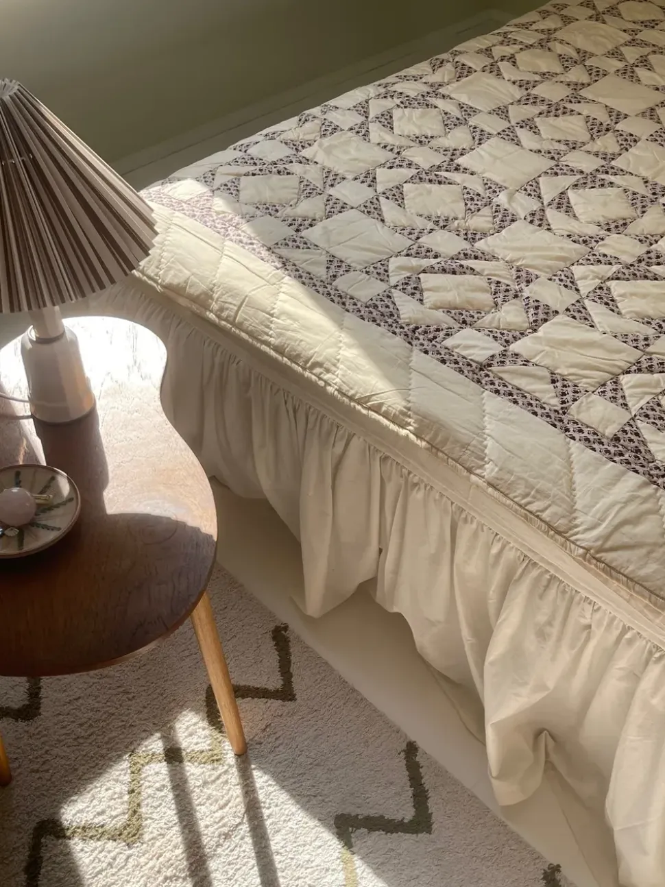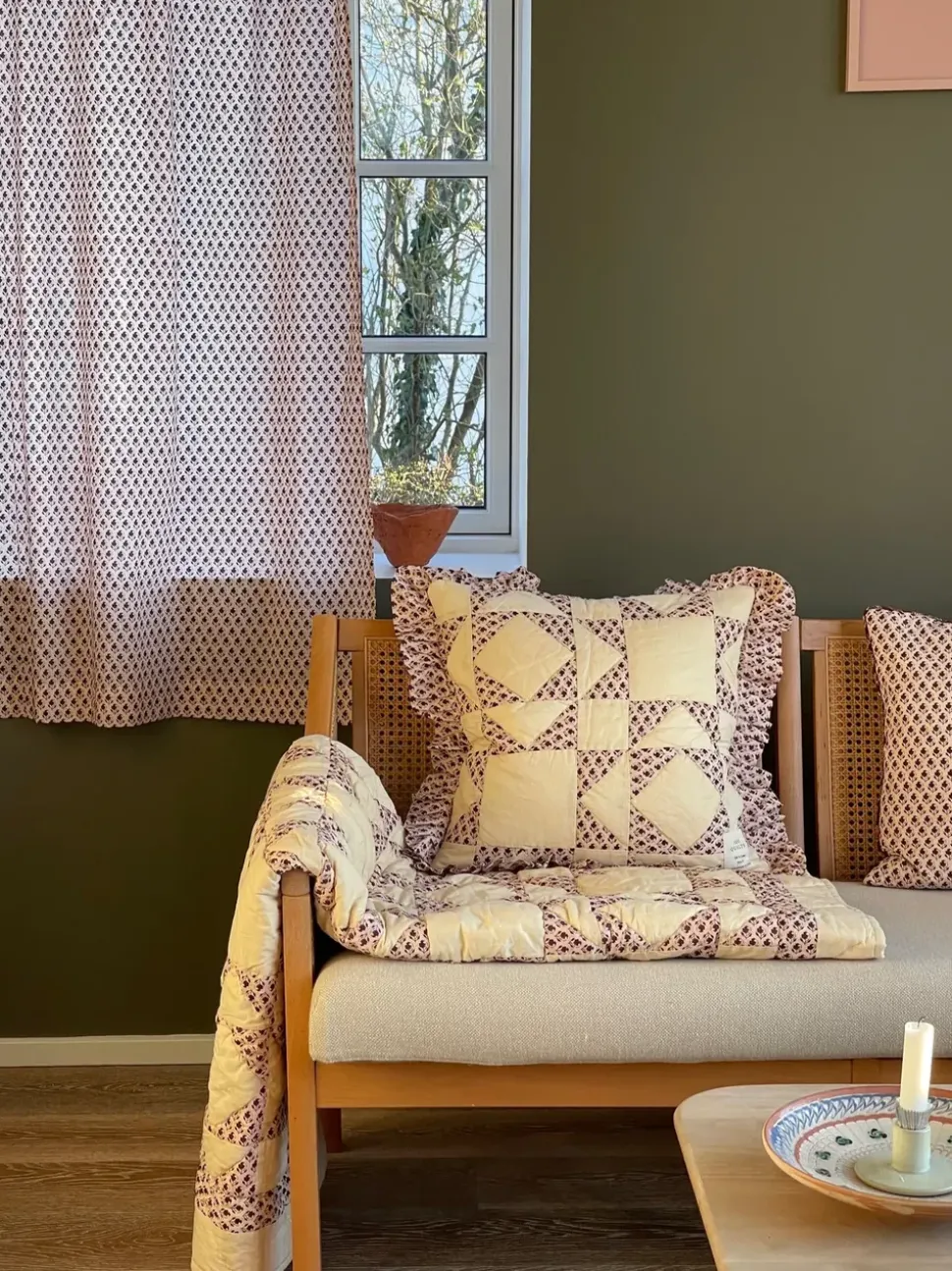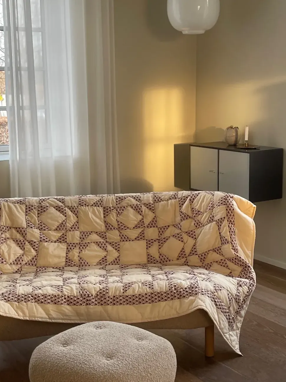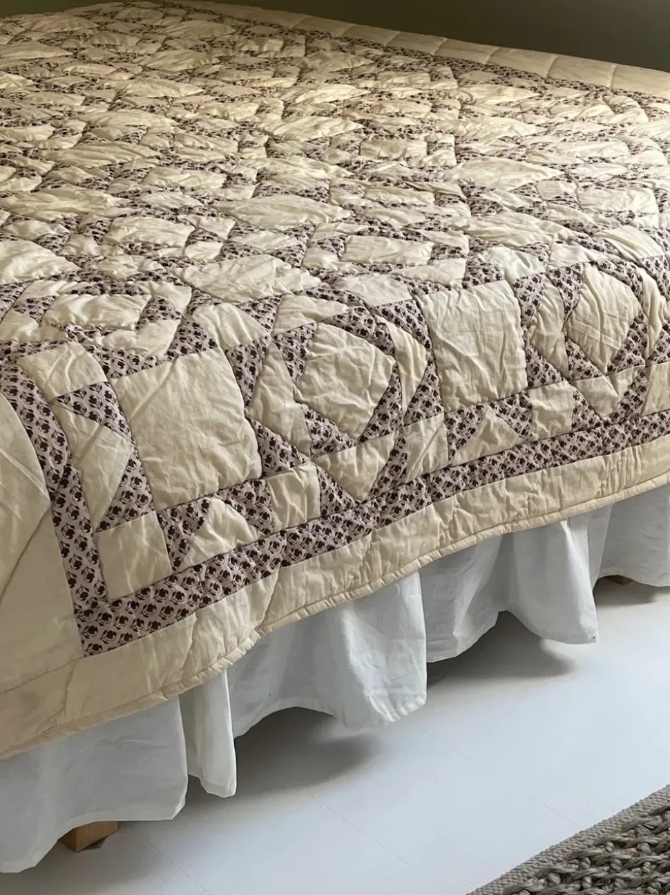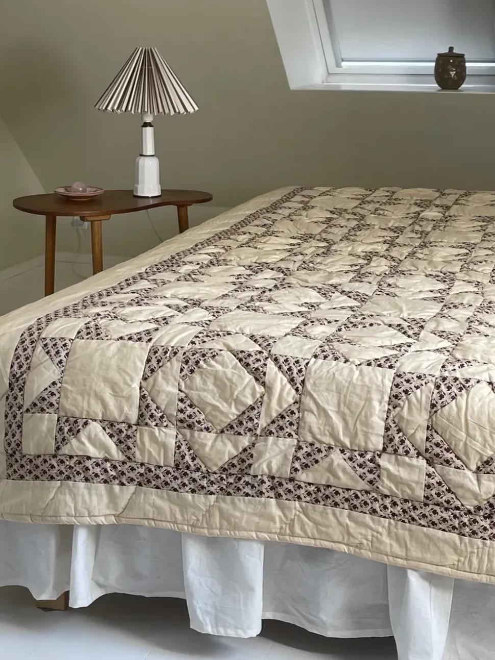 Das Patchwork Plaid von , entworfen von Line Meldgaard Hviid, verbindet traditionelle Handwerkskunst mit moderner Ästhetik. Jede Decke wird in Indien in sorgfältiger Handarbeit aus überschüssigen Textilien genäht, was jeden Quilt zu einem Einzelstück macht. Der cremefarbene Grundton wird durch ein tiefes auberginefarbenes Muster elegant unterbrochen, wodurch ein ruhiger und raffinierter Look entsteht. Die mehrlagigen Baumwollstoffe spenden sowohl Wärme als auch Gewicht und verleihen der Decke ein luxuriöses Gefühl. Erhältlich in zwei Größen, damit sie sowohl auf das Sofa als auch auf das Bett passt.