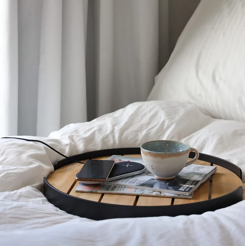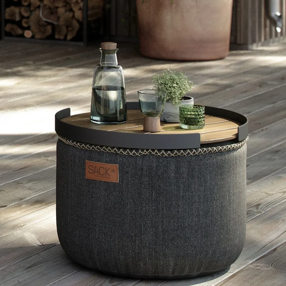 Dank der leichten Konstruktion lässt sich das Tablett leicht transportieren, und in Kombination mit einem SACKit-Pouf verwandelt es sich in einen funktionalen Tisch. Verwenden Sie es für das Frühstück im Bett, zum Servieren von Tapas oder als dekoratives Element in Ihrer Wohnung. Seine robusten Materialien widerstehen wechselnden Witterungsbedingungen und die natürliche Patina des Teakholzes entwickelt sich mit der Zeit wunderschön. Kombinieren Sie ihn mit anderen SACKit-Möbeln, um einen kompletten skandinavischen Look mit warmen, natürlichen Materialien zu schaffen.