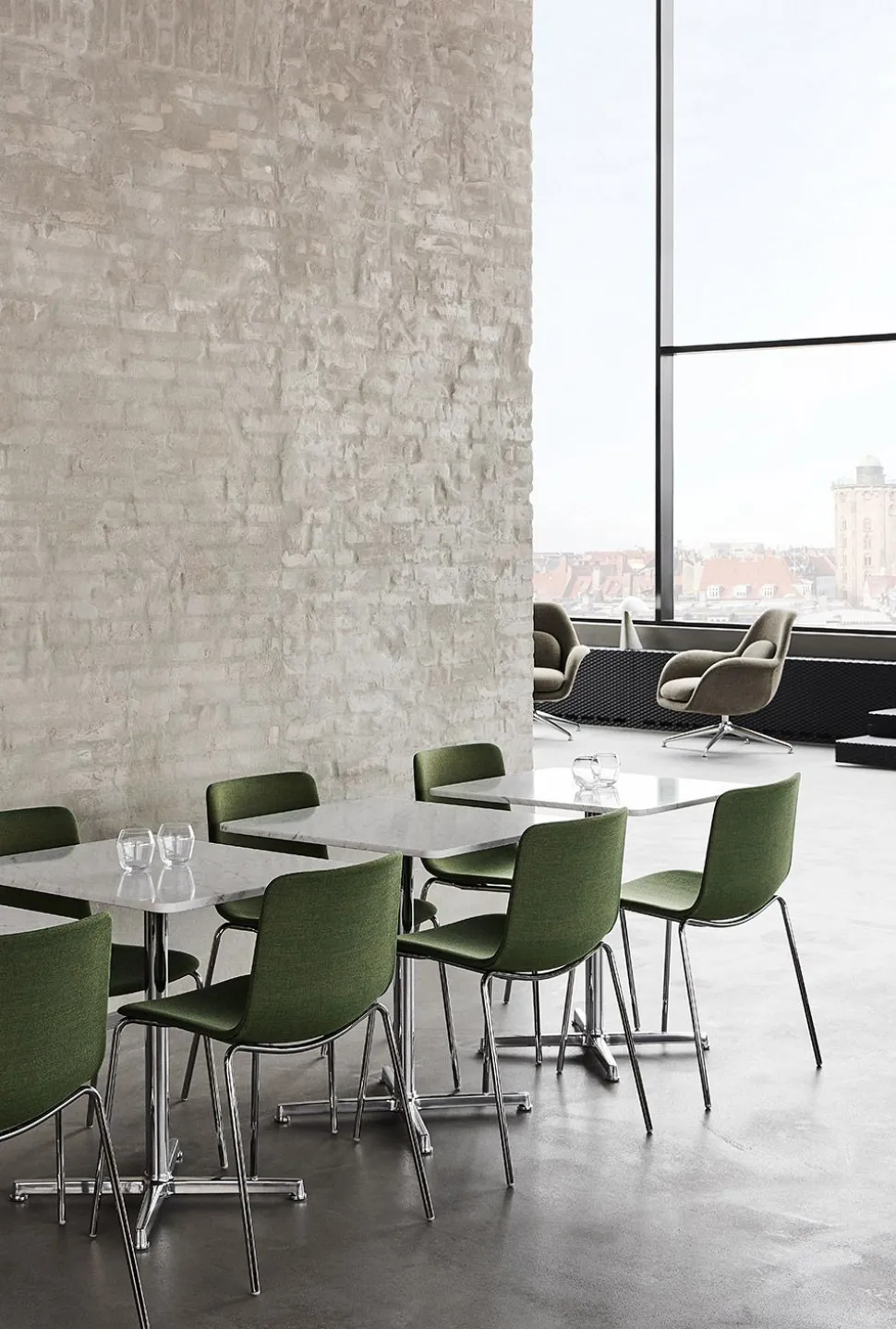 Die „Pato“-Kollektion wurde erstmals 2013 bei vorgestellt und hat sich seitdem zu einer umfassenden Grundlage für das Fredericia-Designuniversum entwickelt. Der größte Teil des Sortiments von besteht aus Designklassikern, die aus traditionellen Materialien wie Holz und Leder gefertigt werden. Pato“ bietet jedoch eine Alternative, die ohne Qualitätseinbußen neue Technologien und Materialien einsetzt, die auf das Klima ausgerichtet sind. Die Möbel werden standardmäßig aus recycelbarem Polypropylen-Kunststoff sowie aus überschüssigem Kunststoff hergestellt, der völlig frei von Zusatzstoffen ist. Auf diese Weise setzt sich Fredericia auf dem verantwortlichen Markt durch, ohne dabei seinen Geist und seine Tradition der schönen Handwerkskunst zu verlieren.