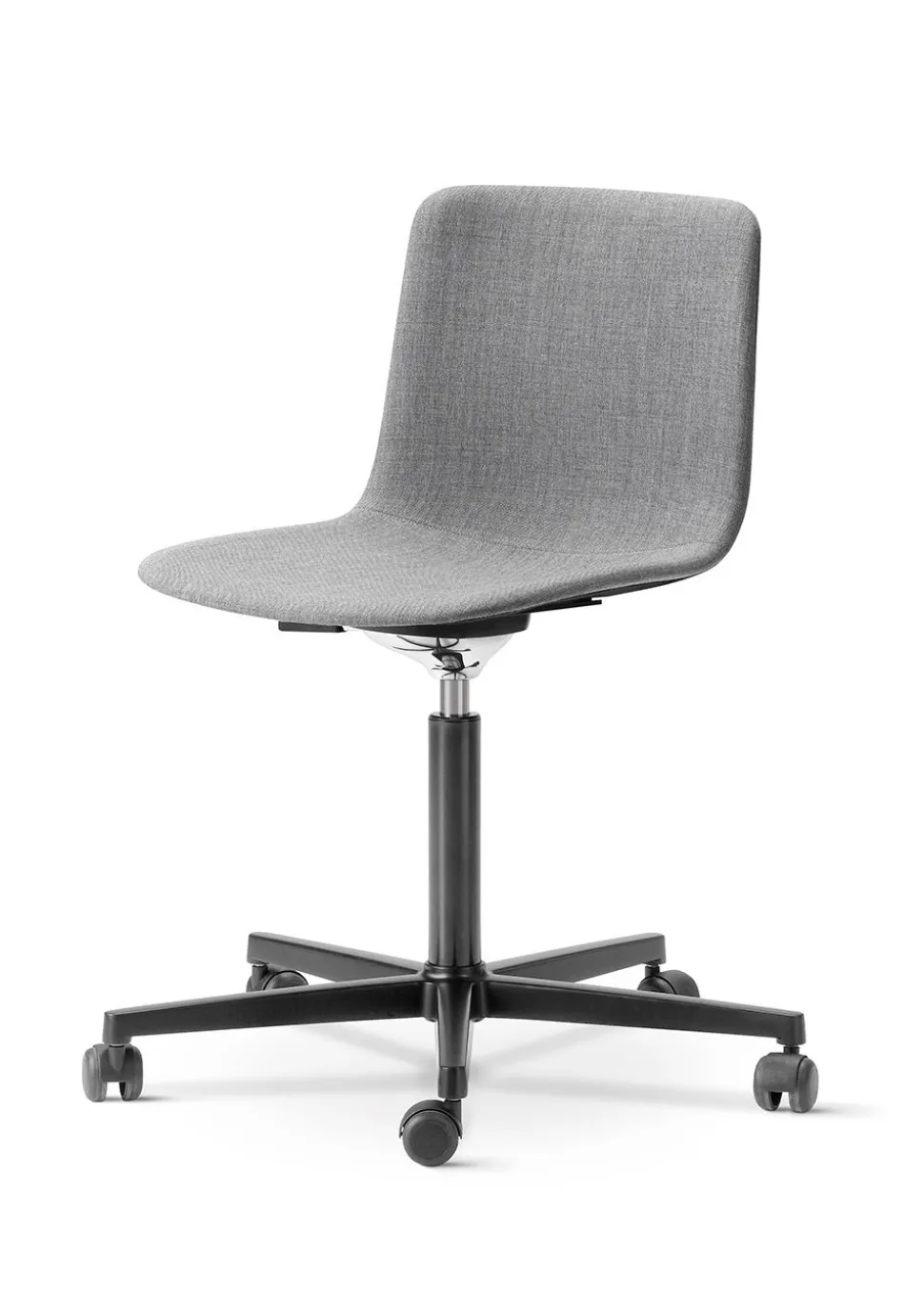 - Gestell aus poliertem Aluminium oder pulverbeschichtetem Stahl. Sitz gepolstert mit CMHR-Schaum, bezogen mit Textil oder Leder nach Wahl. Serienmäßig mit passenden Rollen und Höhenverstellfunktion ausgestattet.