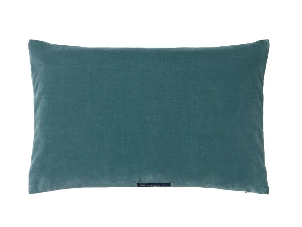Schönes handgefertigtes Samtkissen von der Dänin . Die Kissen von werden alle in Dänemark handgefertigt und aus europäischen Stoffen hergestellt, und jedes Kissen hat eine tierfreundliche und antibakterielle Daunenfüllung.