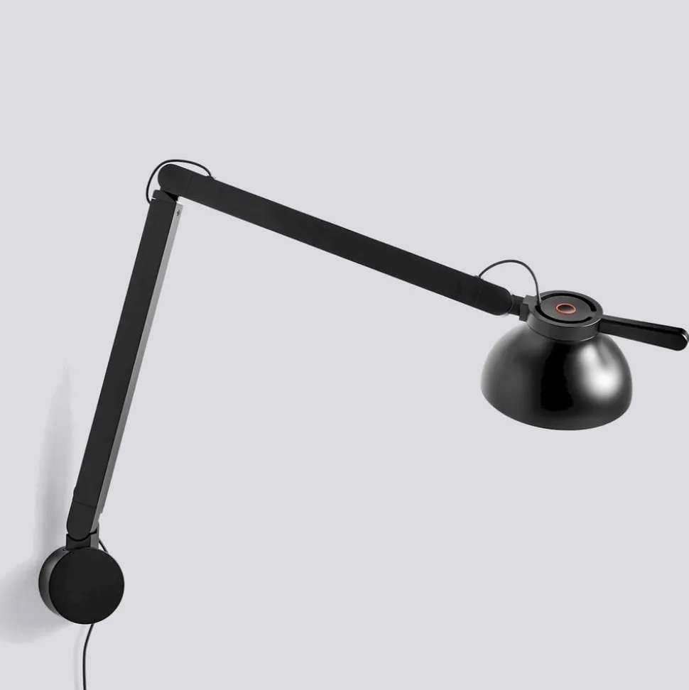 PC Double Arm W. Wall Bracket ist eine moderne und funktionelle HAY-Lampe, die von Pierre Charpins entworfen wurde. Die Lampe hat eine integrierte LED, wobei die Lampe einen Berührungsdimmer hat, an dem Sie auch die Helligkeit einstellen können. Die Lampe hilft, ein gutes Arbeitslicht zu geben.