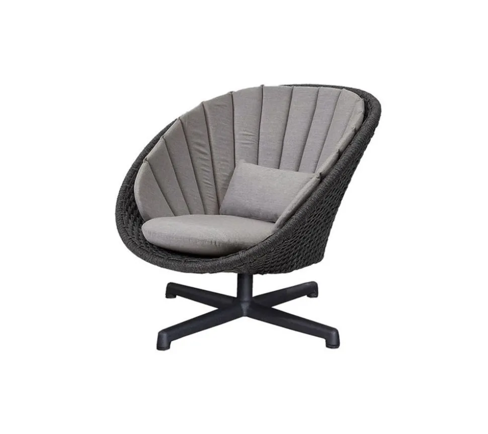 Der Peacock Loungesessel ist ein Entwurf von Foersom & Hiort-Lorenzen MDD. Der Drehsessel hat ein Aluminiumgestell und ist in dem festen und weichen Soft Rope Material erhältlich. Der Loungesessel ist für den Einsatz im Freien vorgesehen.