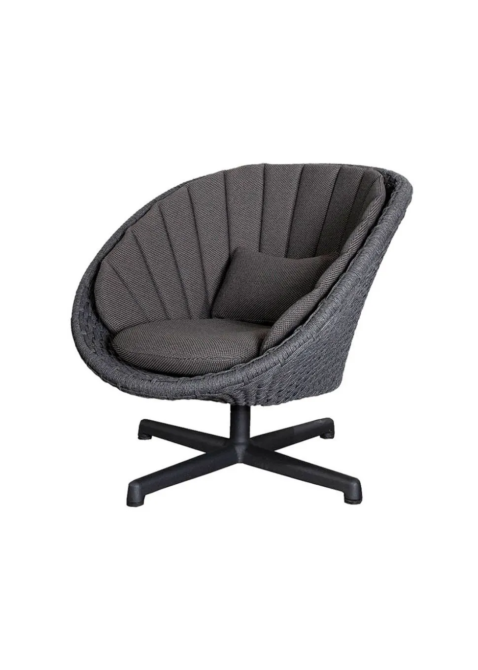 Der Peacock Lounge-Drehstuhl ist ein Entwurf von Foersom & Hiort-Lorenzen MDD. Der Loungesessel besteht aus einer Schale aus Soft Rope und Beinen aus schwarzem Aluminium. Der Stuhl hat einen Drehmechanismus, der ihn mobiler macht. Der Stuhl hat einen hohen Komfort und verleiht der Wohnung ein modernes und schönes Aussehen.