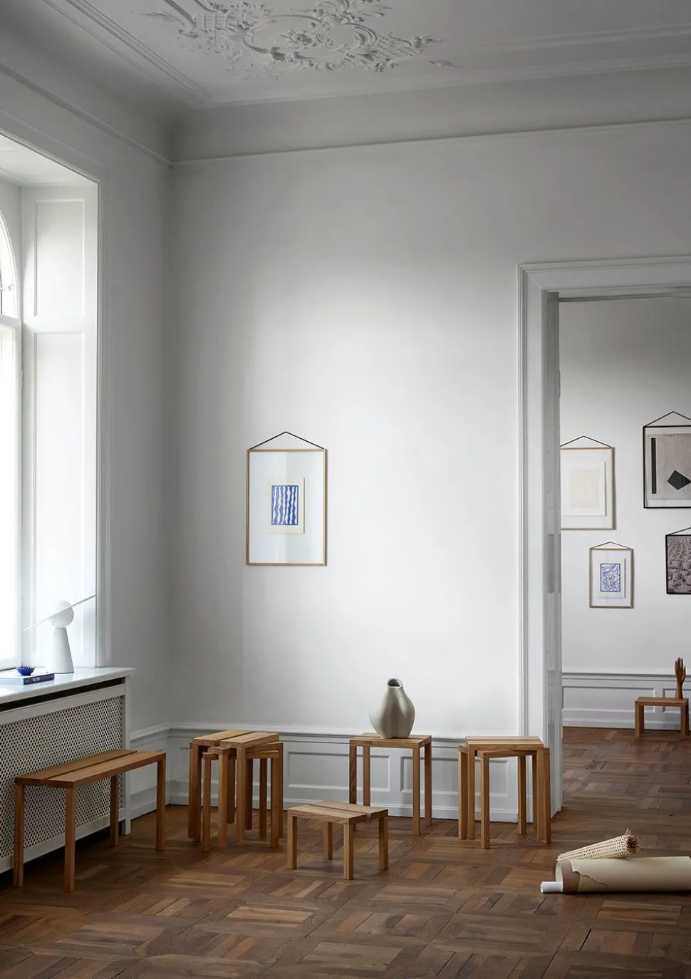 Die einfache Peg Bench wird von Moebe hergestellt. Die Bank wird aus FSC-zertifizierter Eiche in Europa hergestellt. Die Peg Bench besteht aus zwei Eichenholzstücken, die in der Mitte mit Pflöcken verbunden sind. Das schmale Design der Bank ist ideal für schmale Eingänge und Flure.