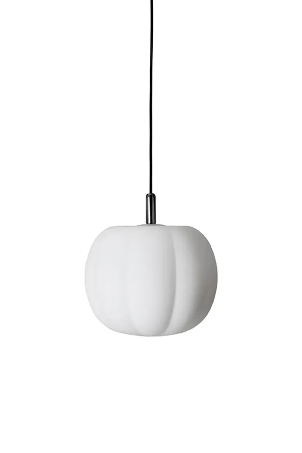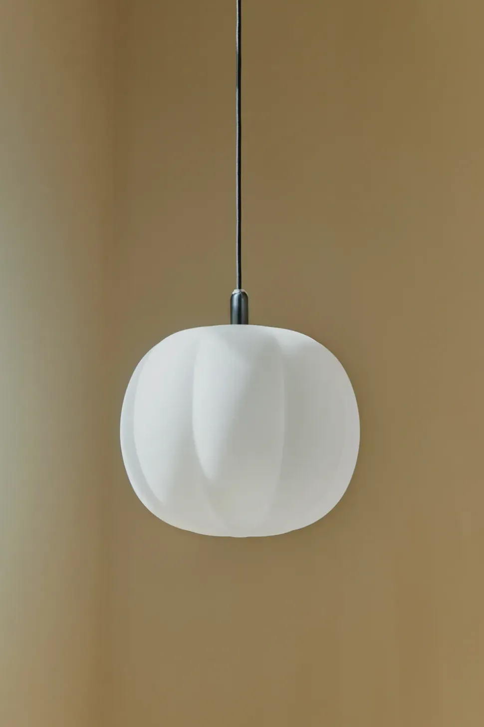 PePo Pendant von Made By Hand, entworfen von Nina Bruun, ist eine mundgeblasene Glasleuchte mit einem poetischen und organischen Ausdruck. Die Form ist von der charakteristischen Silhouette des Kürbisses inspiriert und verleiht der Leuchte einen verspielten und ikonischen Charakter. Die weichen, wellenförmigen Linien erzeugen ein lebendiges Wechselspiel zwischen Licht und Schatten, während der diskrete Stiel an der Spitze den skulpturalen Ausdruck des Designs vervollständigt. Jede Leuchte ist einzigartig in Form und Textur, was PePo zu einer charaktervollen und dekorativen Ergänzung für jeden Raum macht. Erhältlich in verschiedenen Farbtönen, die sowohl zu einem modernen als auch zu einem eher klassischen Zuhause passen.