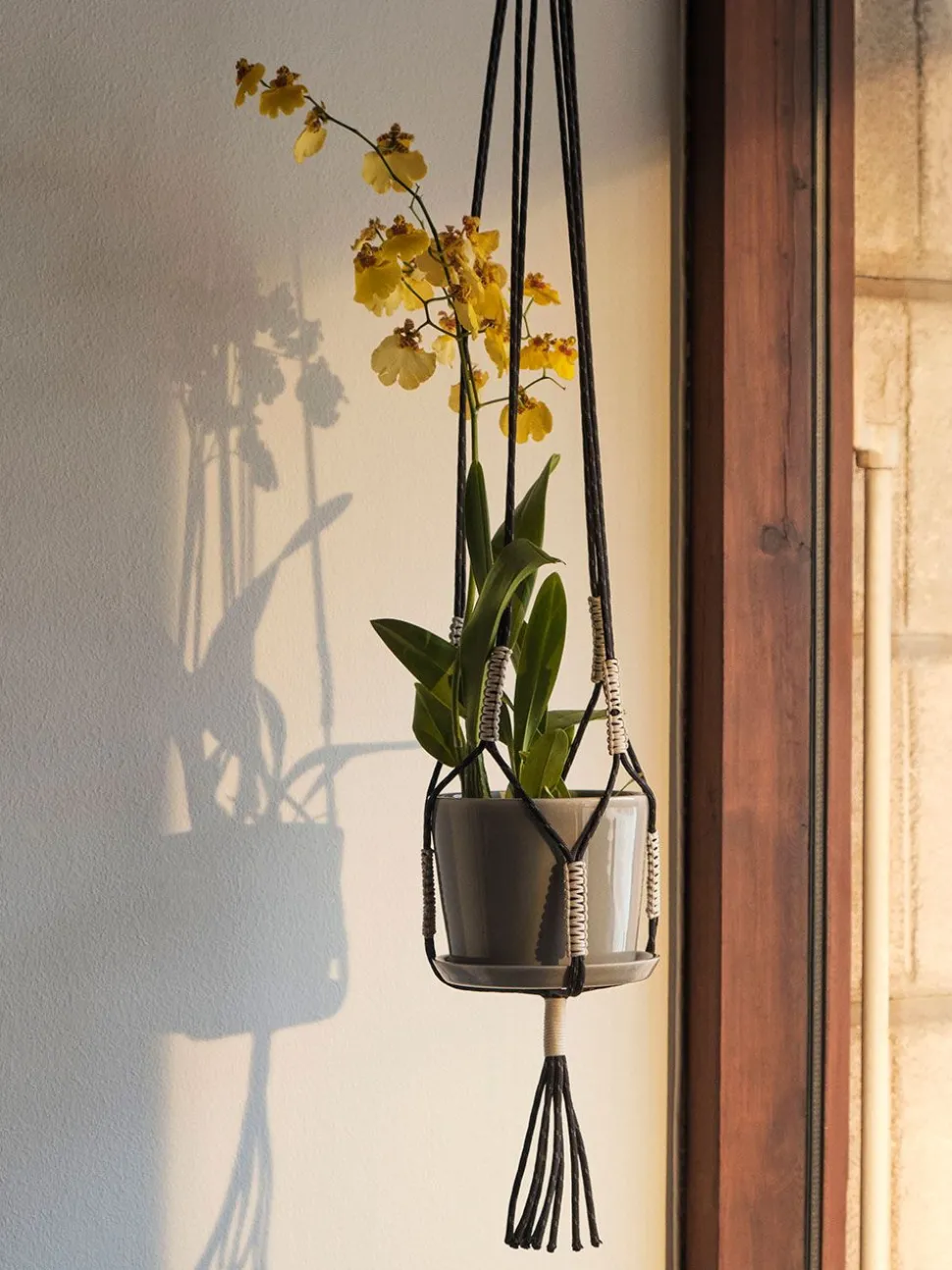 Das schrullige, von den 70er Jahren inspirierte Pflanzgefäß ist eine flexible und einzigartige Möglichkeit, Platz für Pflanzen im Haus zu schaffen. Das universelle Design passt für die meisten Töpfe und lässt sich leicht an der Decke oder in Regalen montieren.