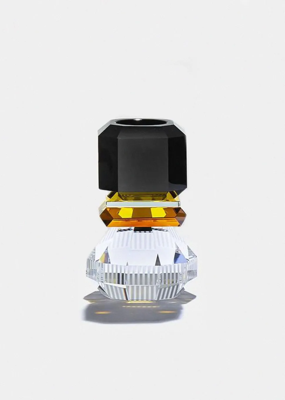 Der Phoenix-Kerzenhalter von besteht aus einer eleganten Kombination aus zweifarbigem Kristallglas, das in einem dreiteiligen geometrischen Design eine einzigartige farbenfrohe Reflexion im Licht erzeugt. Das Kristallglas des Kerzenständers ist handgeschnitzt und passt perfekt zu ähnlichen Glasdekorationen, für eine elegante Symphonie aus farbigem Glas.