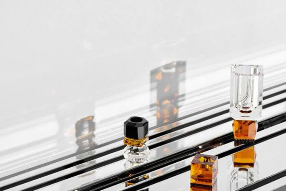 - Handgeschliffenes Kristallglas, entweder klar oder farbig