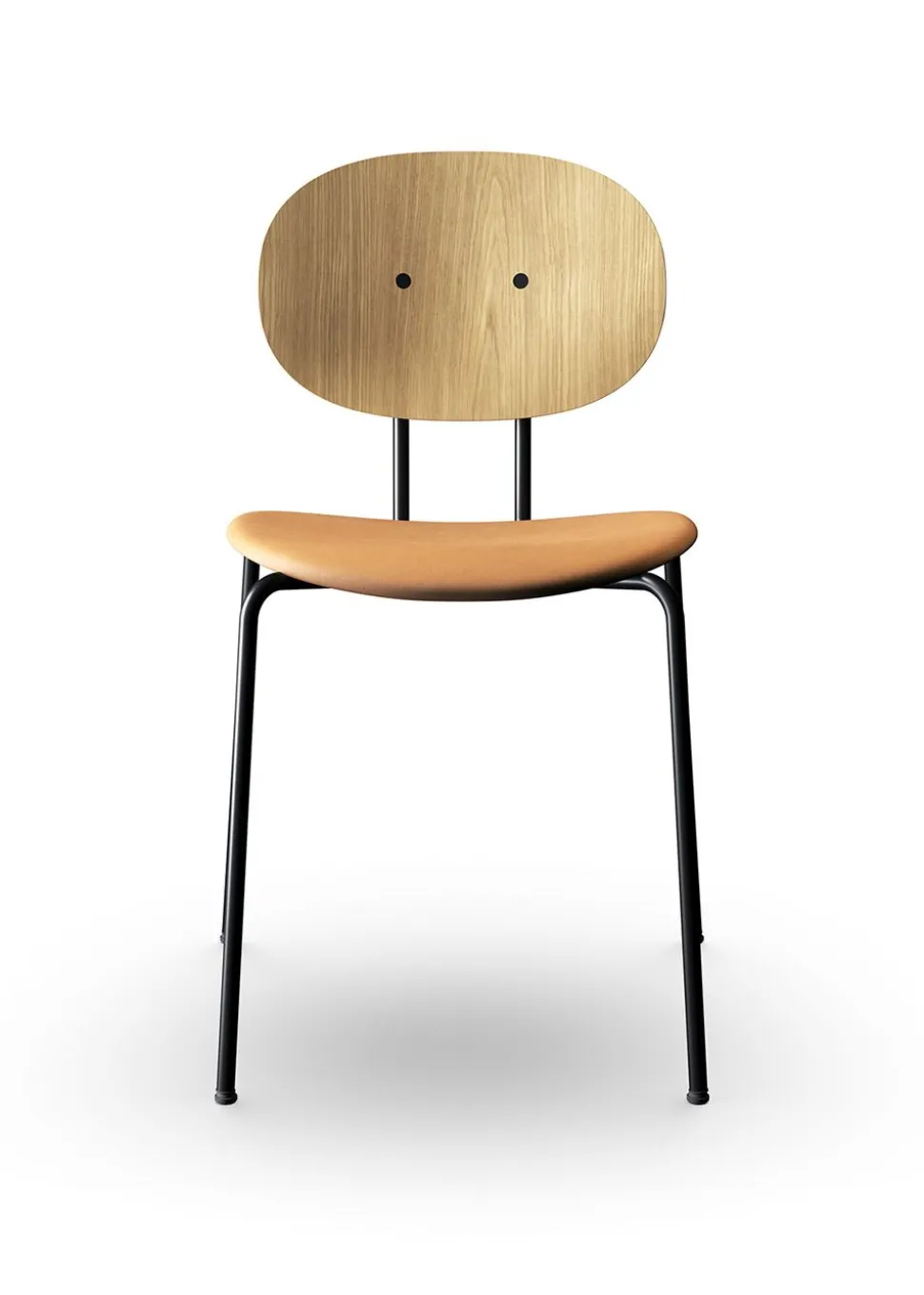 Der Dining Chair geht direkt auf den Superellipse-Tisch zurück. Die berühmte Ellipsenform, die in vielerlei Hinsicht von Piet Heins mathematischem Genie und seiner wissenschaftlichen Herangehensweise an harmonisches Design zeugt, wurde bei diesem Esszimmerstuhl leicht modifiziert, um sich den menschlichen Proportionen anzupassen. Ein leichter Schwung in der Rückenlehne verleiht dem Stuhl einen hohen Sitzkomfort, ohne die ikonische Ellipsenform zu provozieren, und ein mit luxuriösen Stoffen und Leder gepolsterter Sitz verleiht dem Stuhl eine zusätzliche Dimension der Exklusivität. Der weiche Stoff der Sitzfläche, das organische Holz der Rückenlehne und das harte Metall des Gestells schaffen das dynamische visuelle Gleichgewicht, für das bekannt war.