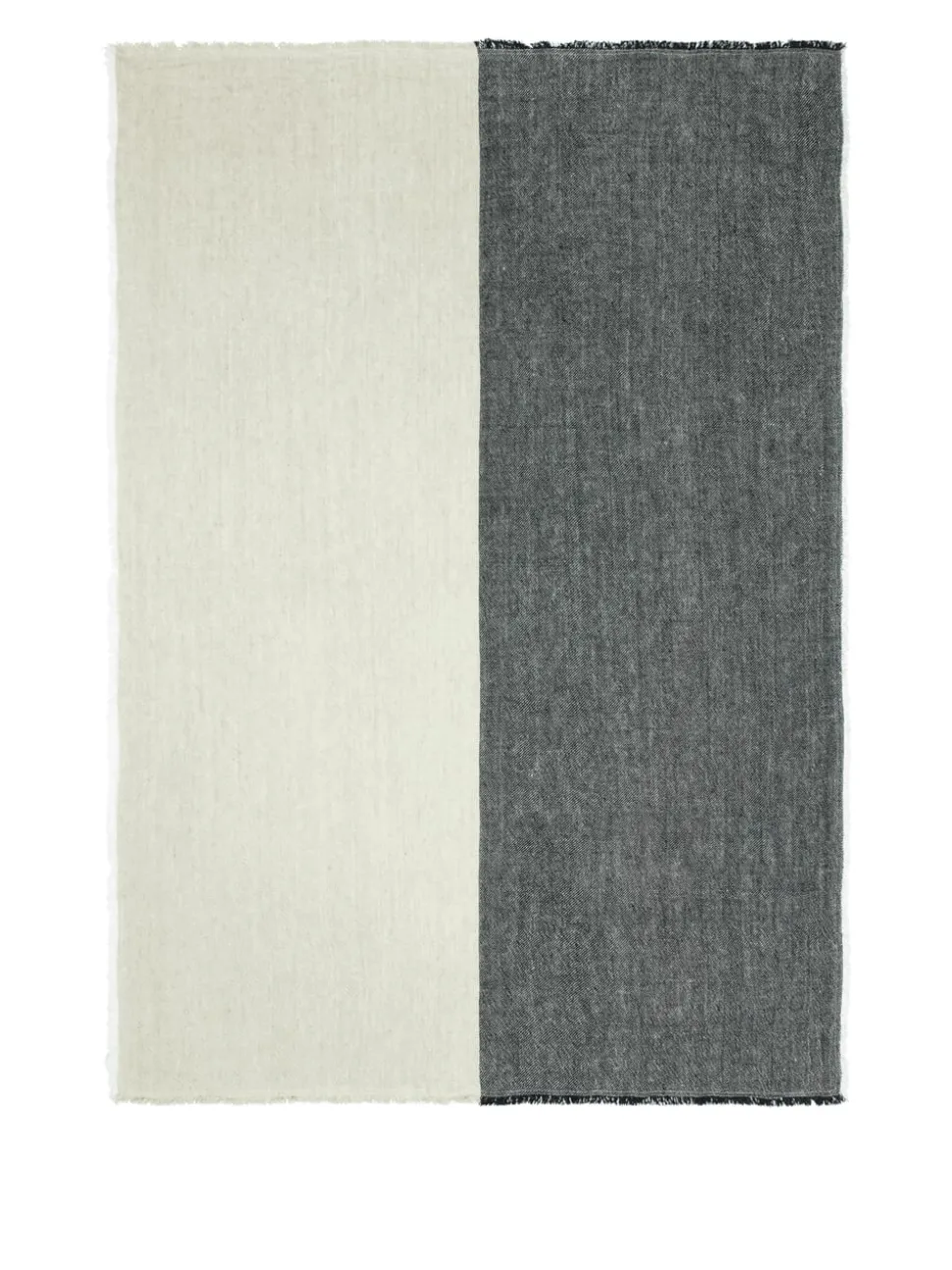 Das Leinentuch Pila von ist eine elegante Verschmelzung von traditioneller Handwerkskunst und moderner Ästhetik. Die Decke aus 100 % Leinen hat ein handgewebtes, gestapeltes Köperdesign, das eine subtile, diagonale Textur erzeugt. Die weichen Wimpernfransen sorgen für ein zartes Finish, während der natürliche Faltenwurf für einen entspannten und raffinierten Look sorgt. Das Farbblockdesign unterstreicht den künstlerischen und zeitlosen Look.