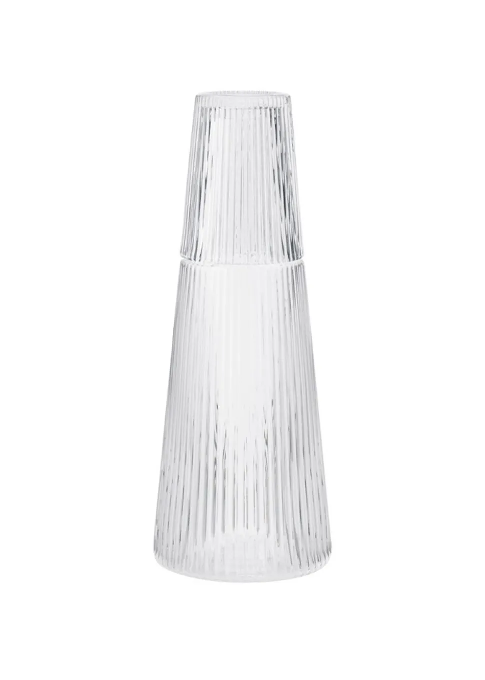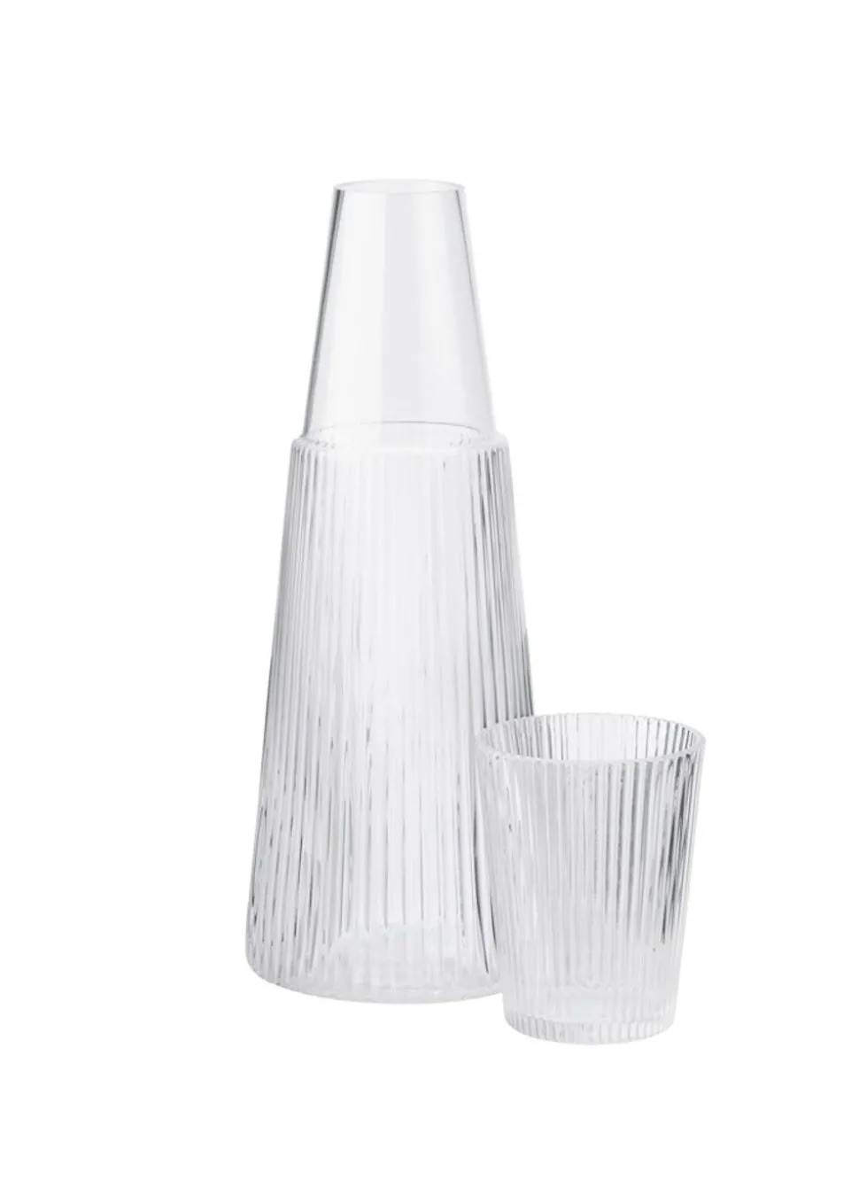 Die Pilastro-Karaffe mit Glas ist unglaublich schön und eignet sich sowohl für den Alltag als auch für Partys. Als Francis Cayouette die Karaffe entwarf, ließ er sich vom Art-Déco-Stil der 1920er Jahre inspirieren. Dies zeigt sich in der Form und den Rillen der Karaffe und des Glases, die sie schlicht und doch elegant machen. Dank ihres schlichten Aussehens lässt sich die Karaffe leicht mit anderem Geschirr kombinieren. Die Karaffe und das Glas können sowohl heiße als auch kalte Getränke aufnehmen und sind somit ideal für den täglichen Gebrauch.