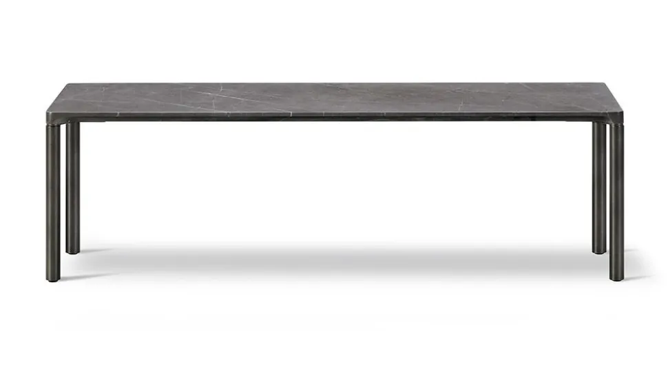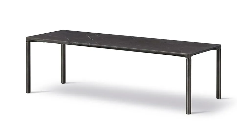 - Pulverbeschichtetes Metallgestell mit Tischplatte aus grauem Pietra-Marmor.